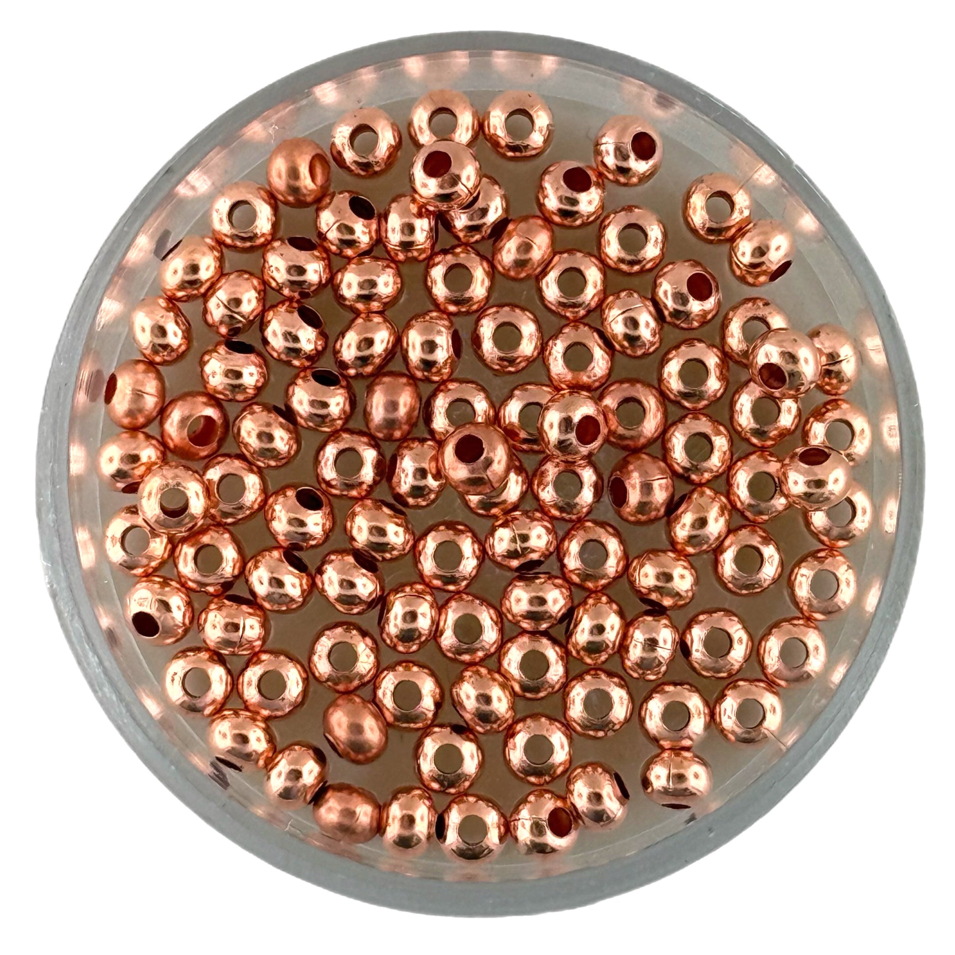 These 3mm hollow rondelle beads are genuine copper with a smooth finish and warm tone. Small but mighty, they add the perfect touch of detail between larger beads or stacked in multiples for subtle texture. Machine-made for consistency and lightly sealed to allow a natural patina to develop over time. A studio essential for spacing, accenting, or fine detail work.