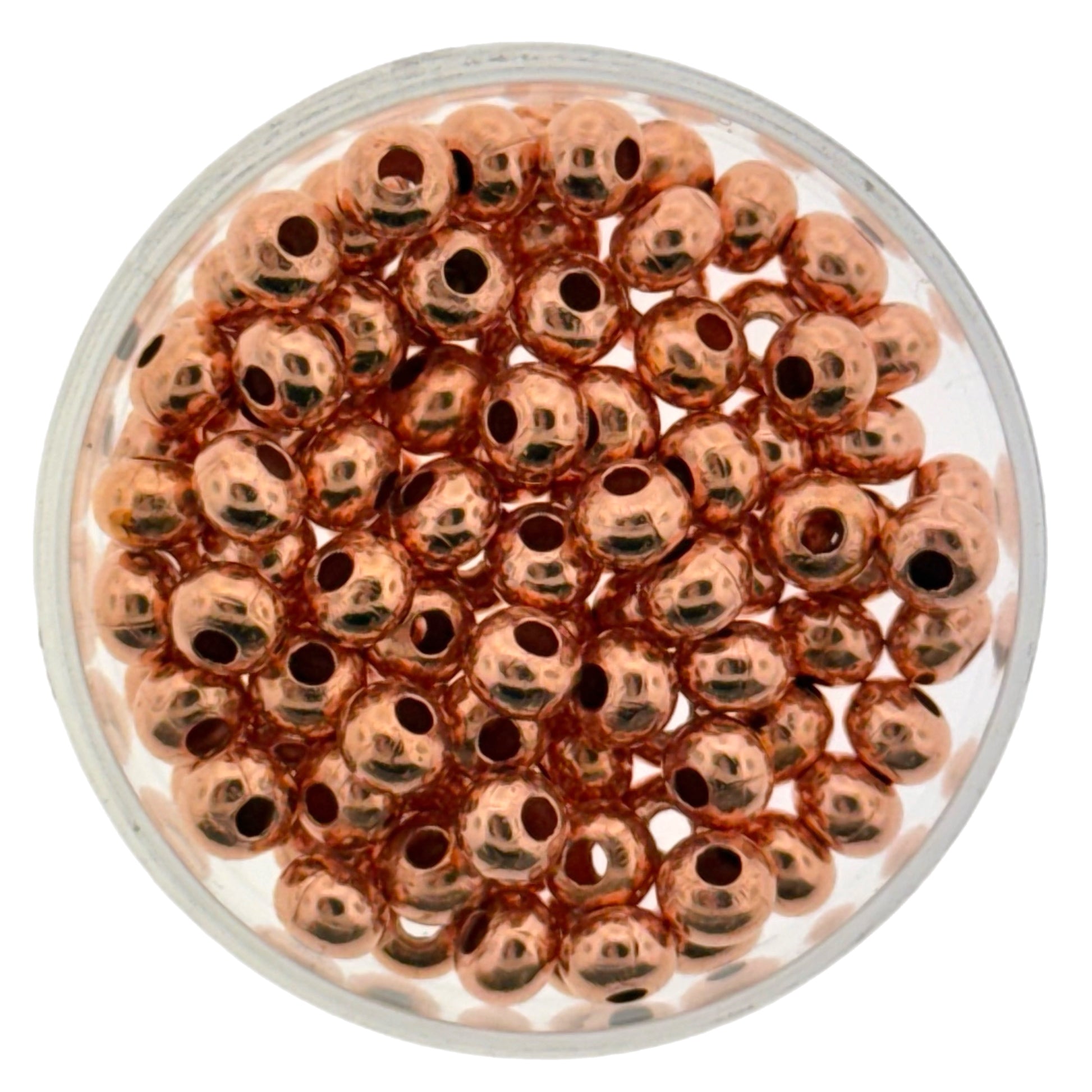 These 5mm hollow copper rondelle beads are smooth, balanced, and easy to work into a wide range of designs. Their warm tone and classic shape make them ideal spacers for stringing or framing focal beads. Each one is machine-made for consistency and lightly sealed, allowing a natural penny-colored patina to develop over time. Sold in packs of 100.