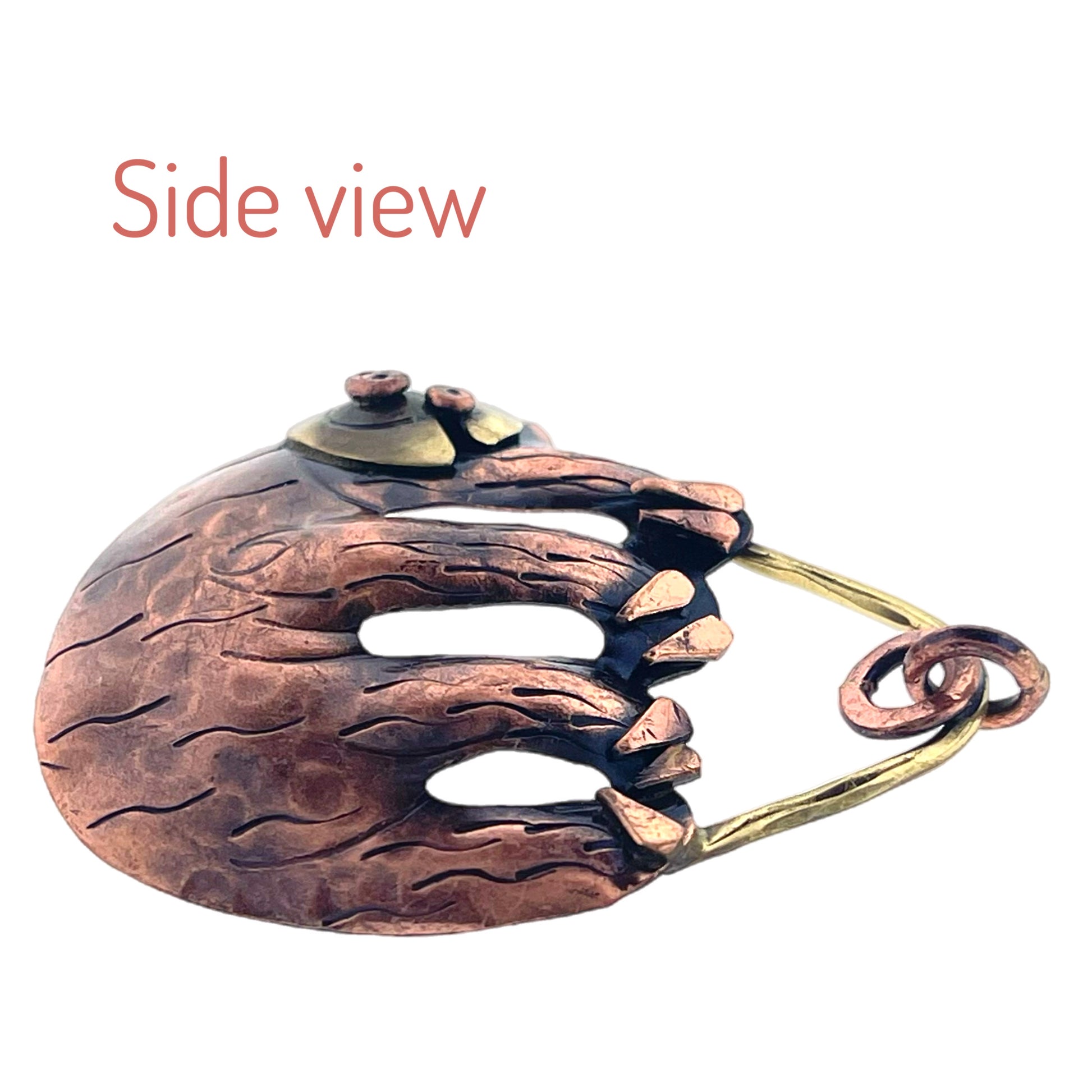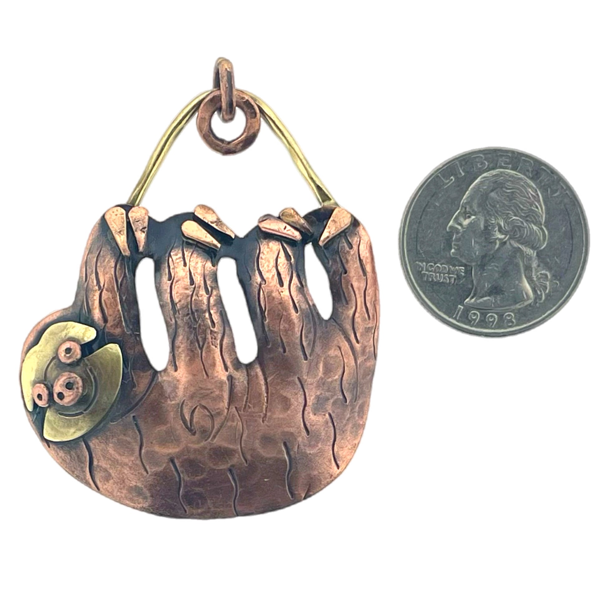 This cheerful copper sloth is here to charm your day, and your designs. With its endearing face and relaxed hanging pose, it brings a whimsical touch to your handmade jewelry. Crafted in copper and sweet brass details, this pendant captures a playful sense of calm and contentment.
