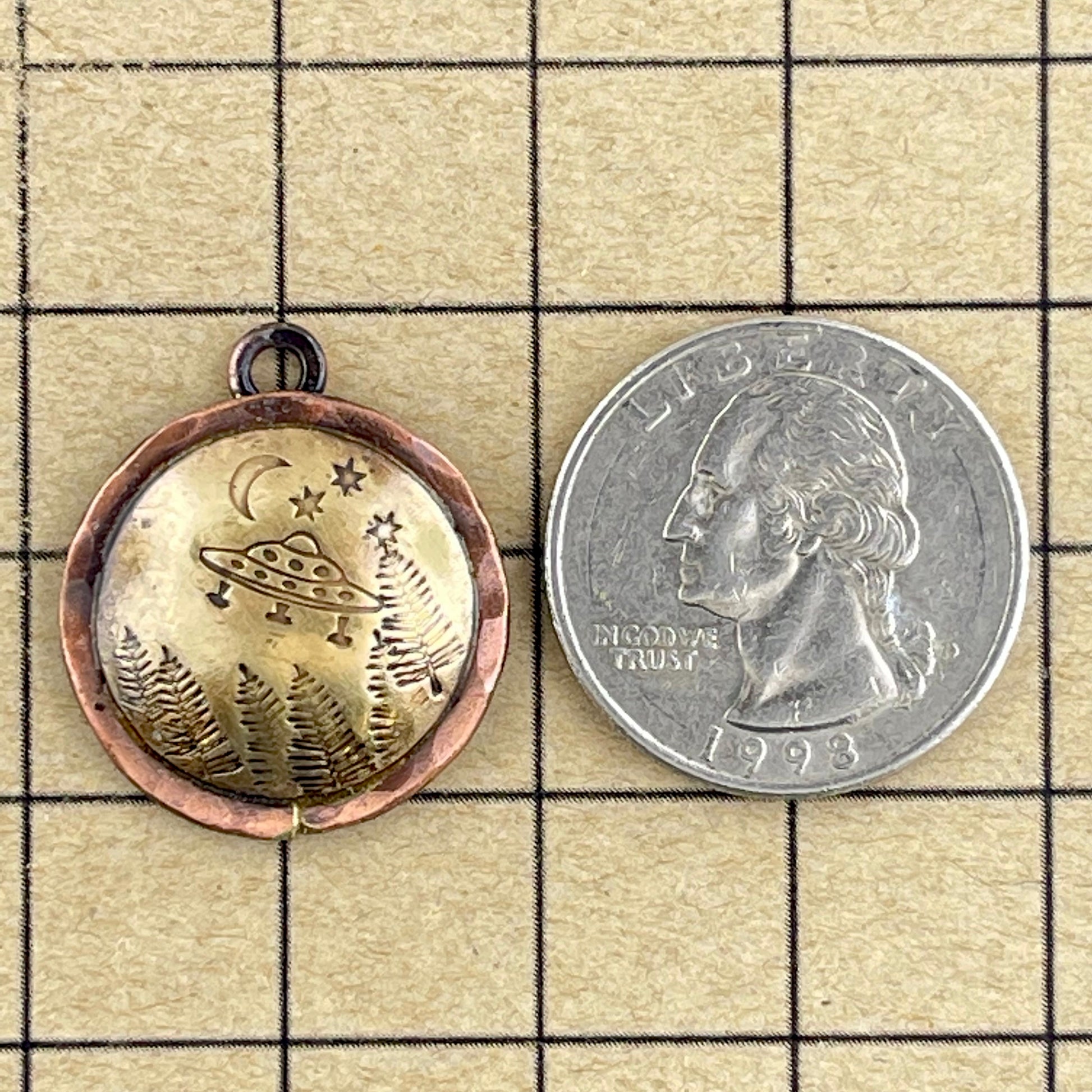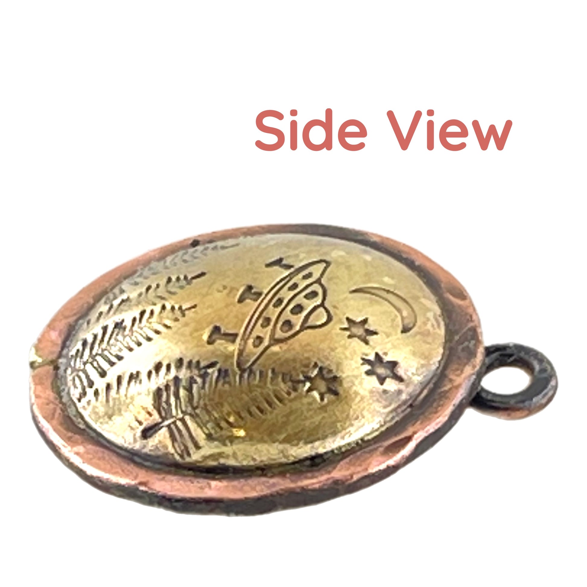 Antiqued Copper & Brass Spaceship Over Forest Domed Charm