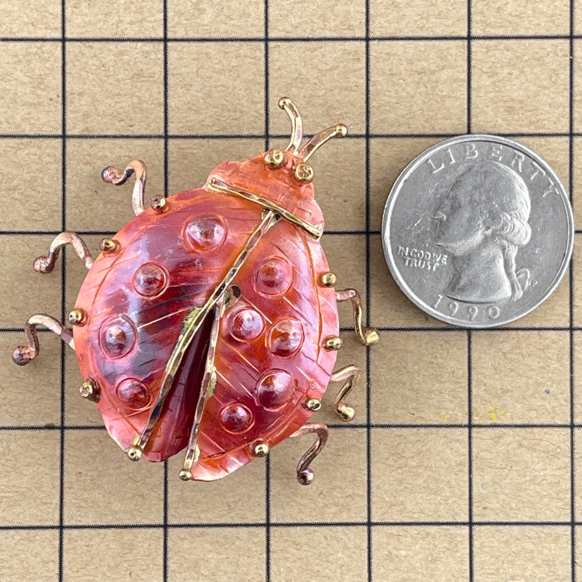 Ladybug Pendant in Genuine Copper with Brass Accents