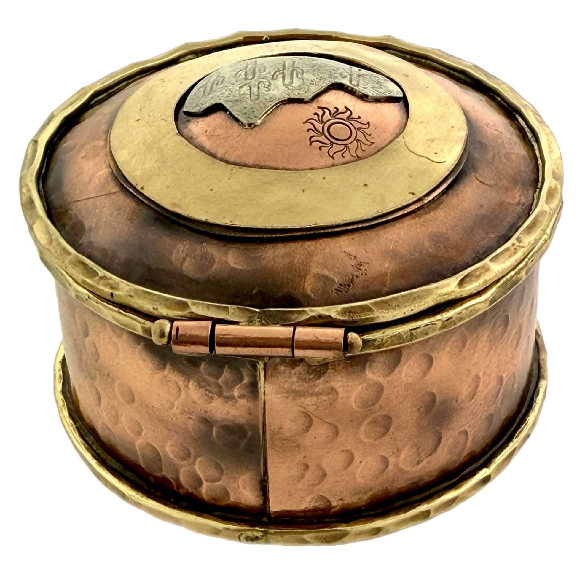 Copper, Brass & German Silver Keepsake Box – Desert Mountain Scene