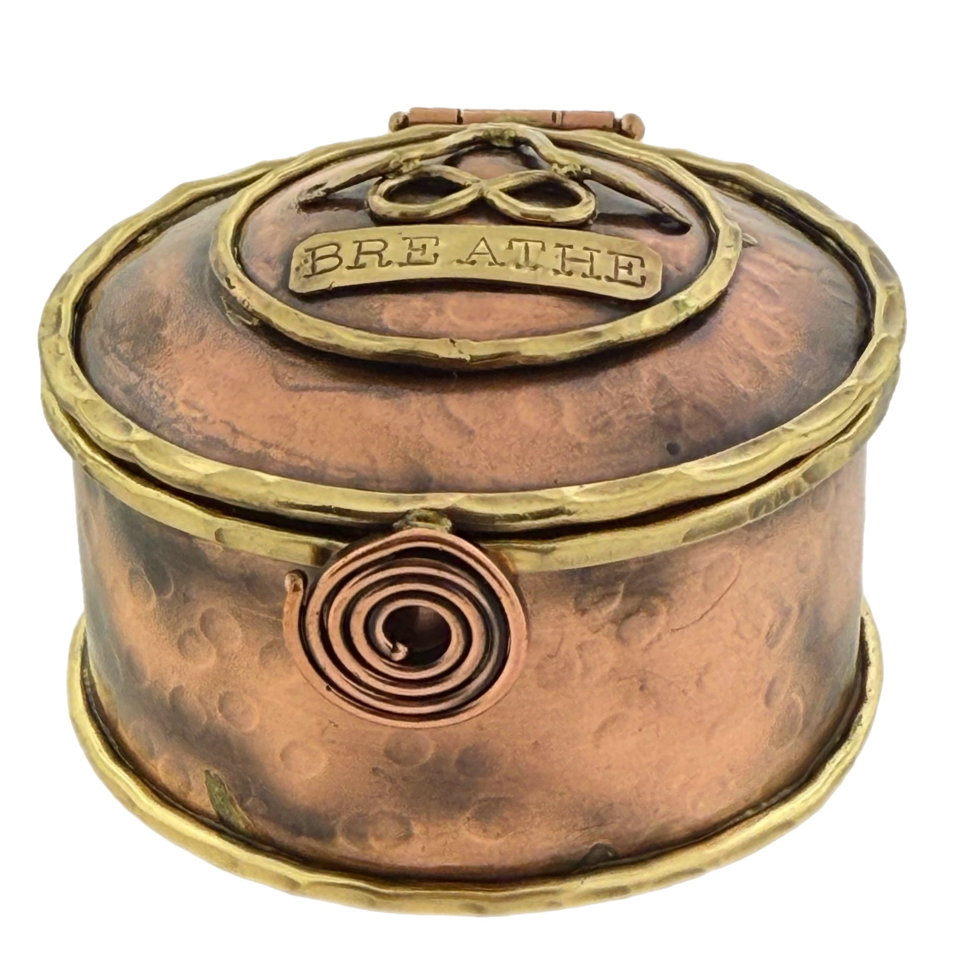 Copper & Brass Keepsake Box, Breathe Meditation Design