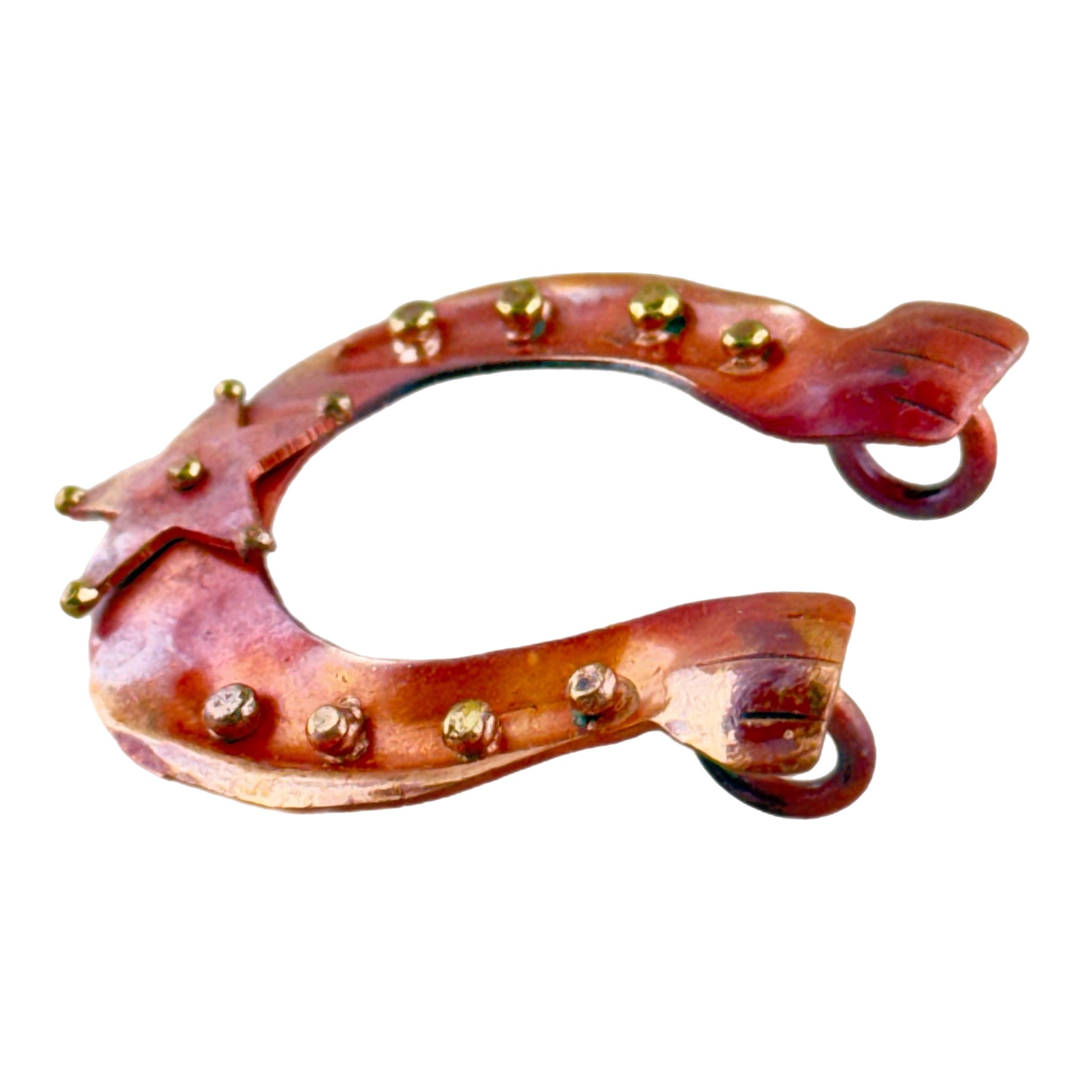 Lucky Horseshoe Pendant with Star – Handmade Copper & Brass Charm