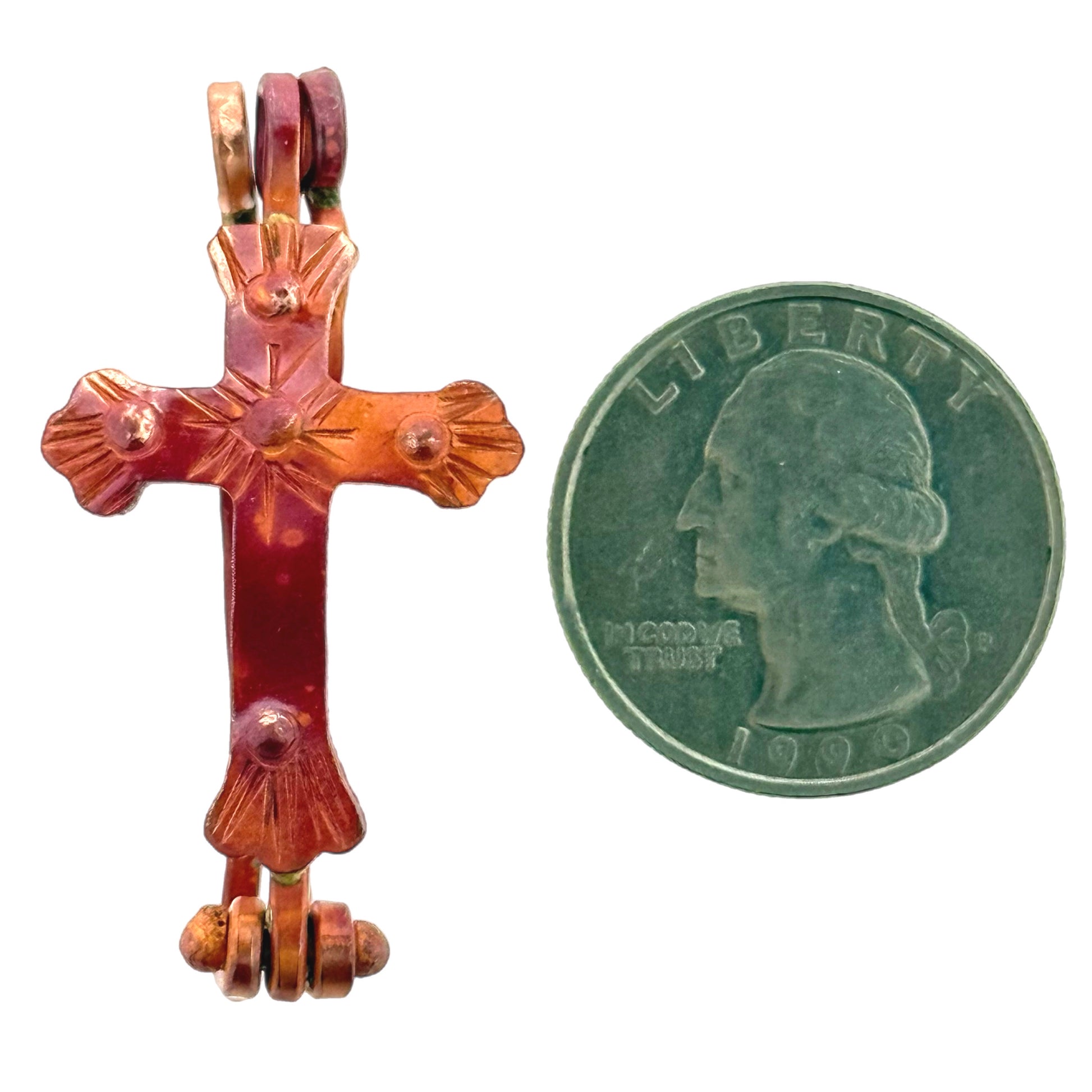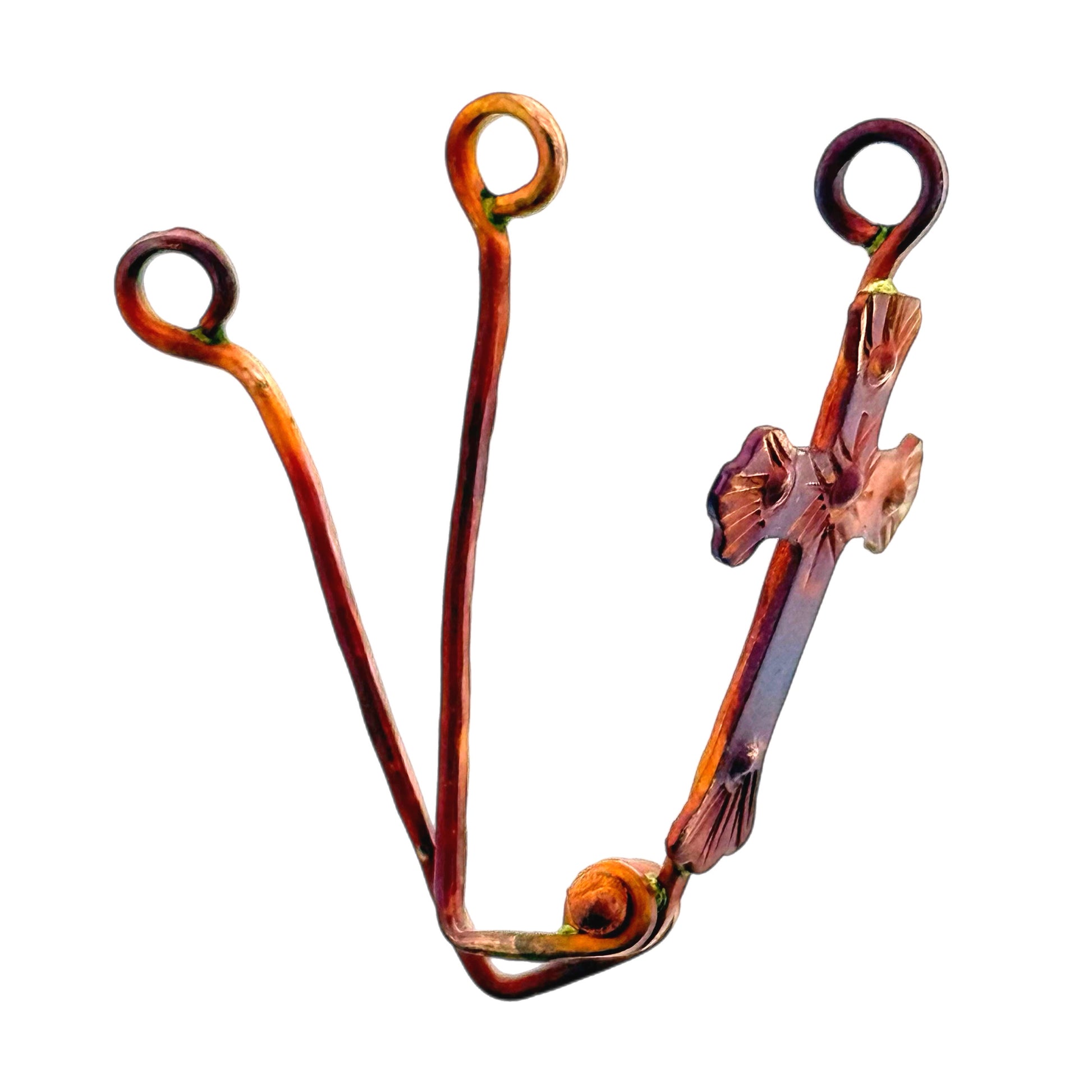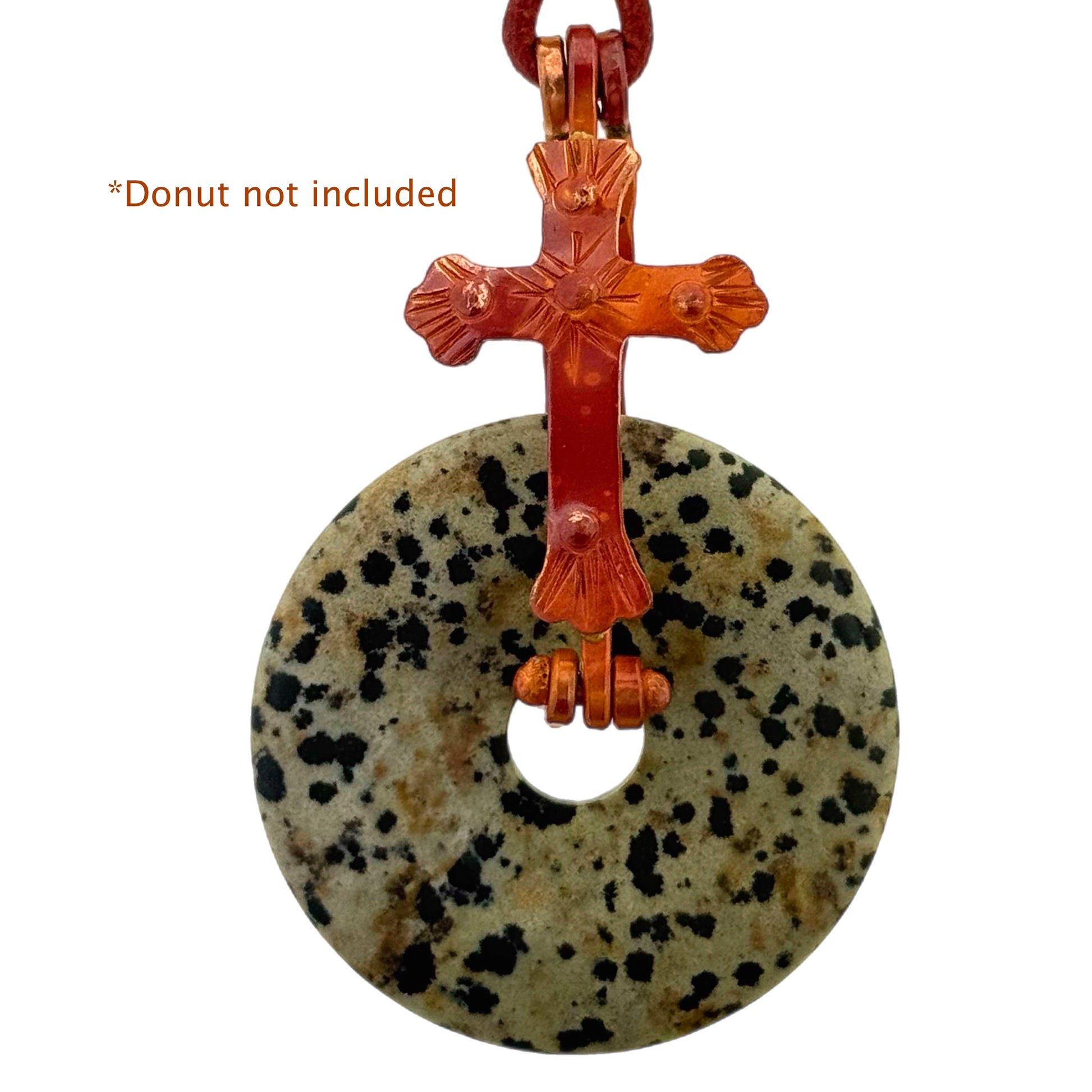 Evoking quiet strength and timeless meaning, the cross design donut bail offers a refined accent for your jewelry creations. Handmade from genuine copper and torch-heated to a rich red patina, its textured surface reveals the care in artisan crafting. The hinged bail opens easily for smooth attachment through donut pendants, bringing both function and rustic elegance to your work. Designed for jewelry designers who appreciate thoughtful details and a rustic style, it completes necklaces with subtle charm and distinctive character.