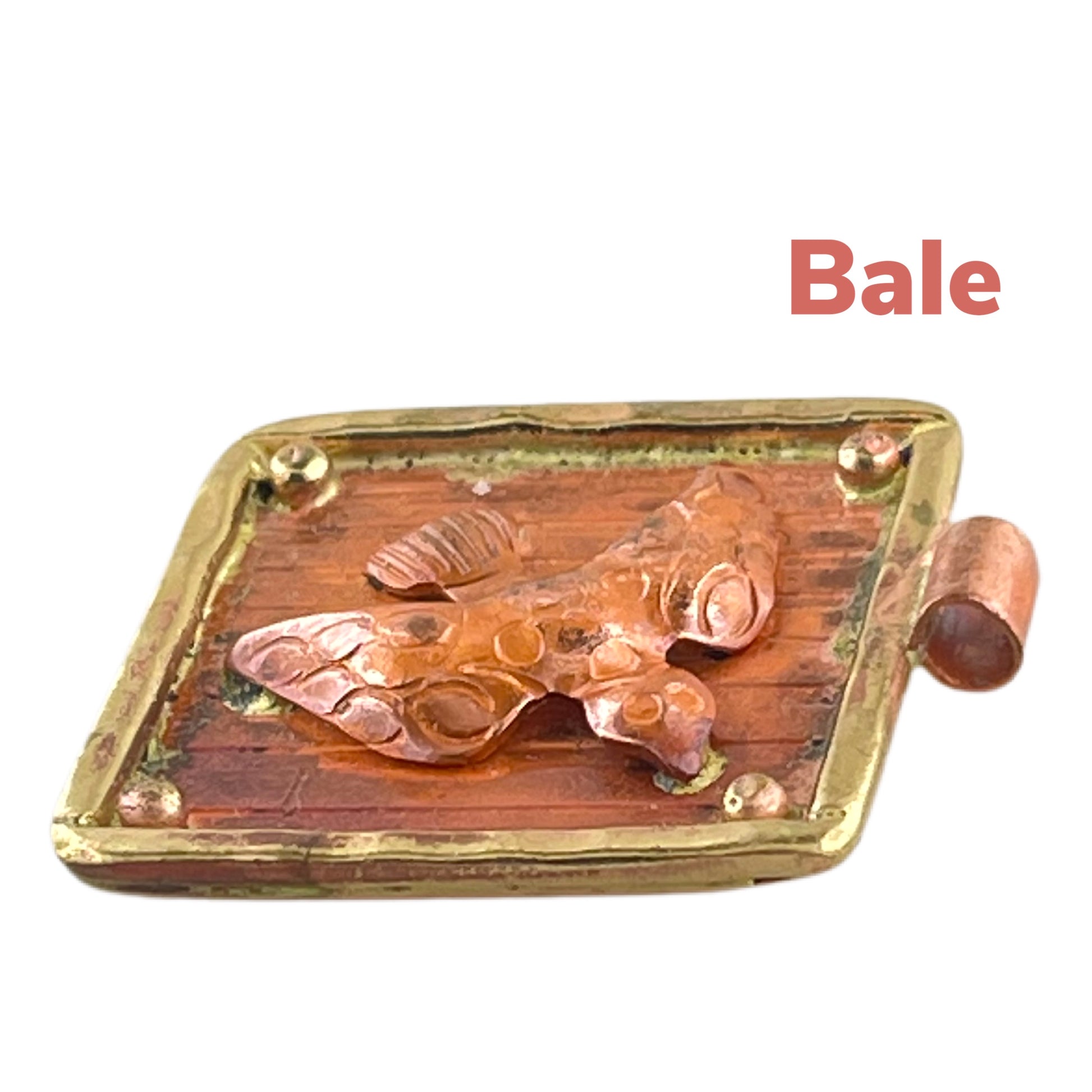 Height ~ 1 3/8" Width ~ 1 1/4" Material ~ Mixed Metals, Copper & Brass