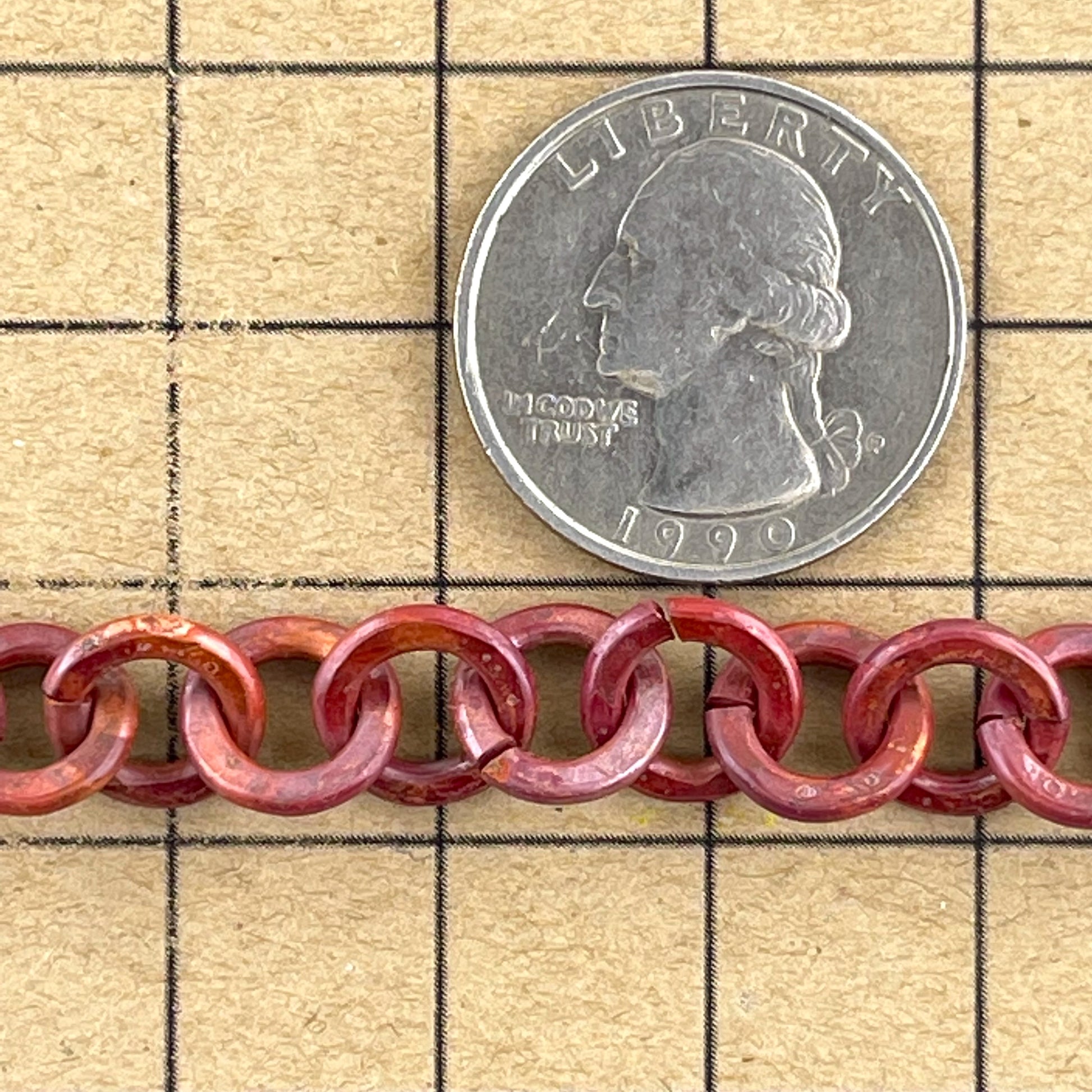 The Extra Small in our four-size series of hand-forged copper ring link chains, this version features 10mm links shaped, hammered, and left unsoldered for maximum versatility. The flame-finished surface brings warm red-copper tones, and a clear lacquer helps preserve the color. Use the full length for necklaces, or separate sections to create bracelets, earrings, or custom connectors. It’s a beautiful and functional addition to your jewelry-making collection.
