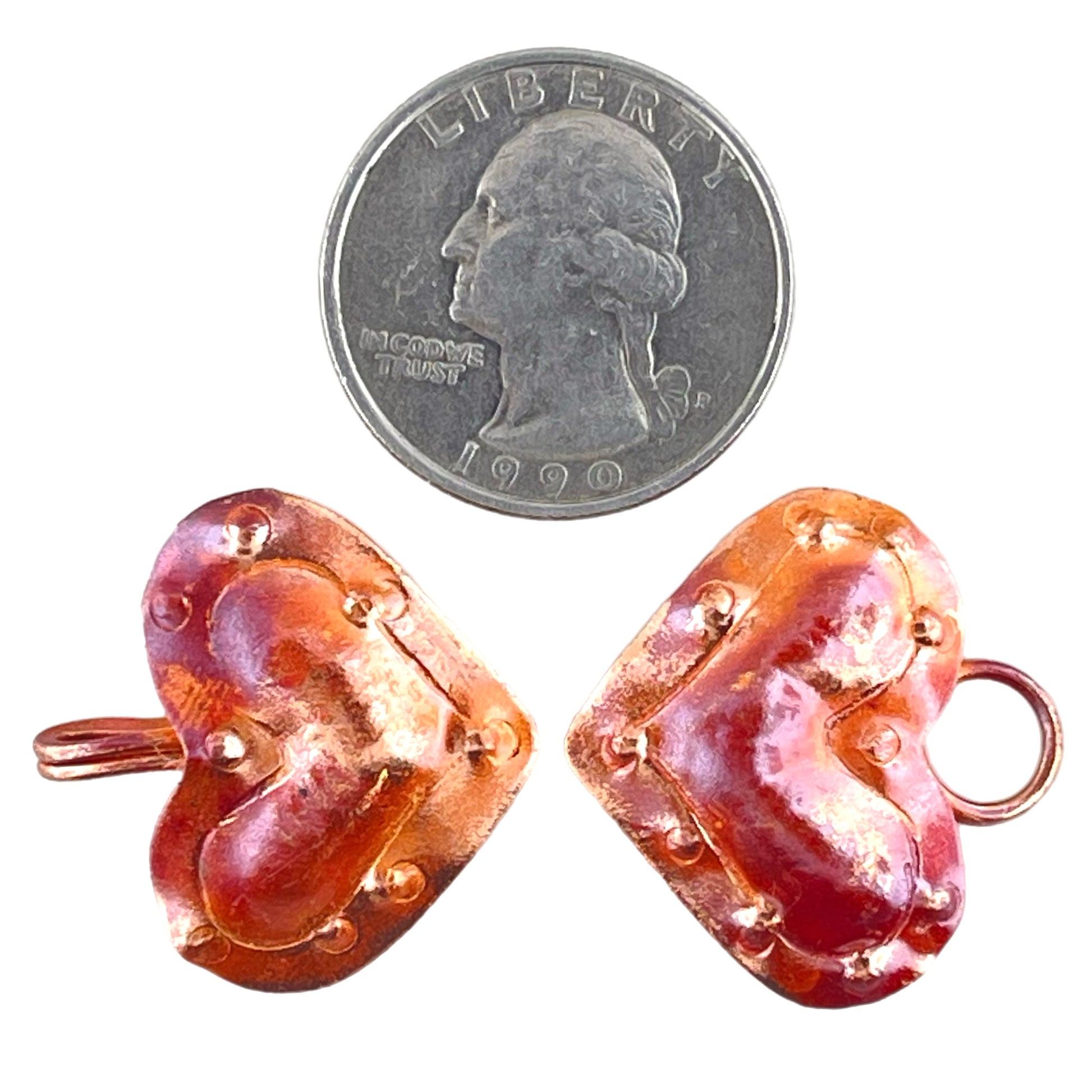 A sweet and sturdy way to finish your design. This handcrafted copper clasp features two interlocking hearts, one shaped into a gentle hook, the other into a secure loop (eye). The rich flame-patinated finish brings out warm, red tones and rustic character. It’s a thoughtful finishing touch that complements the care and creativity you’ve put into your piece.