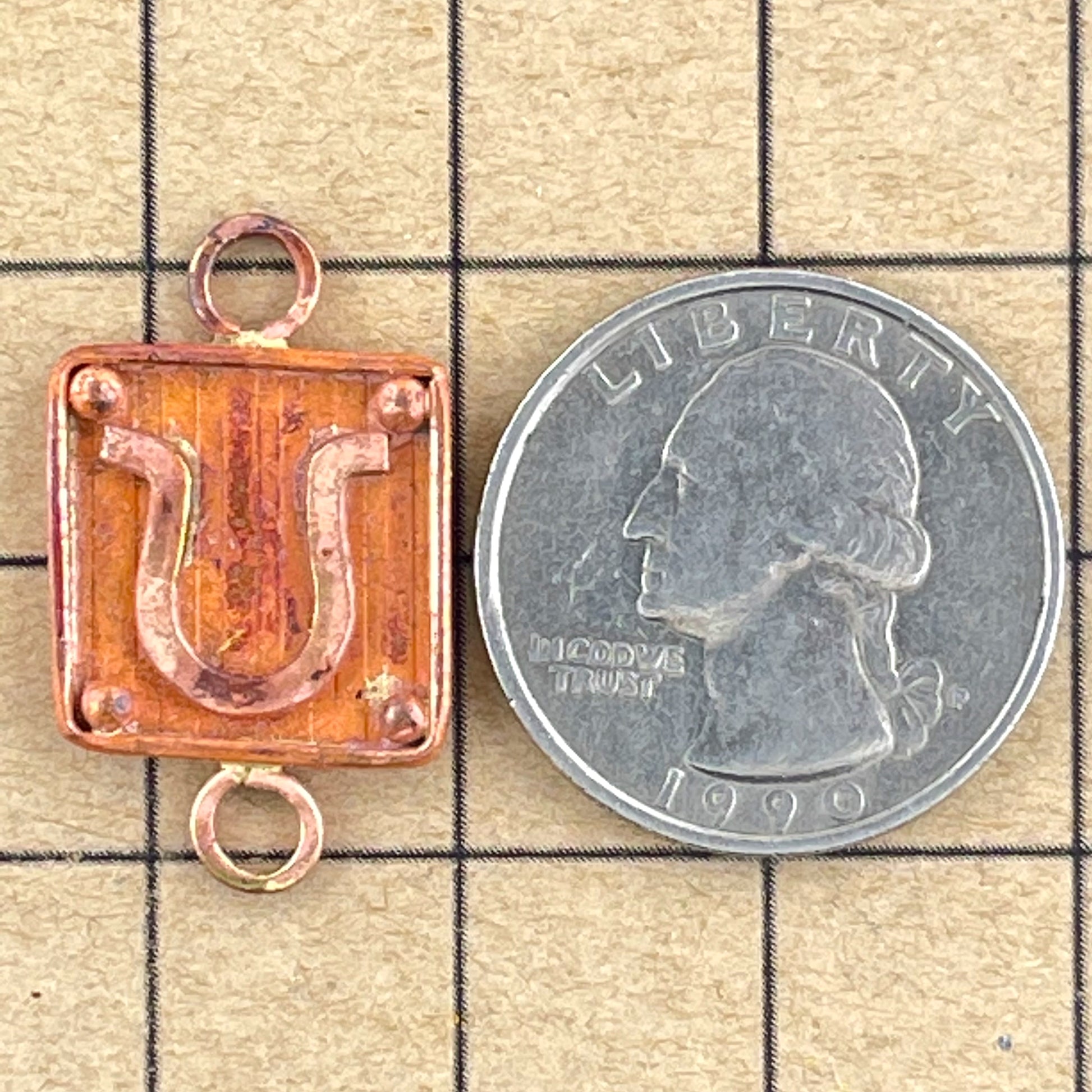 Designed by Patricia Healey, this small horseshoe link is a detailed accent perfect for use in bracelets, necklaces, or earrings. Made from genuine copper with hand-stamped texture and contrasting brass accents, it’s flame-torched to create a warm red patina and sealed with lacquer. Whether you’re a jewelry maker or a horse lover, this piece brings a little charm and a touch of luck to any design.