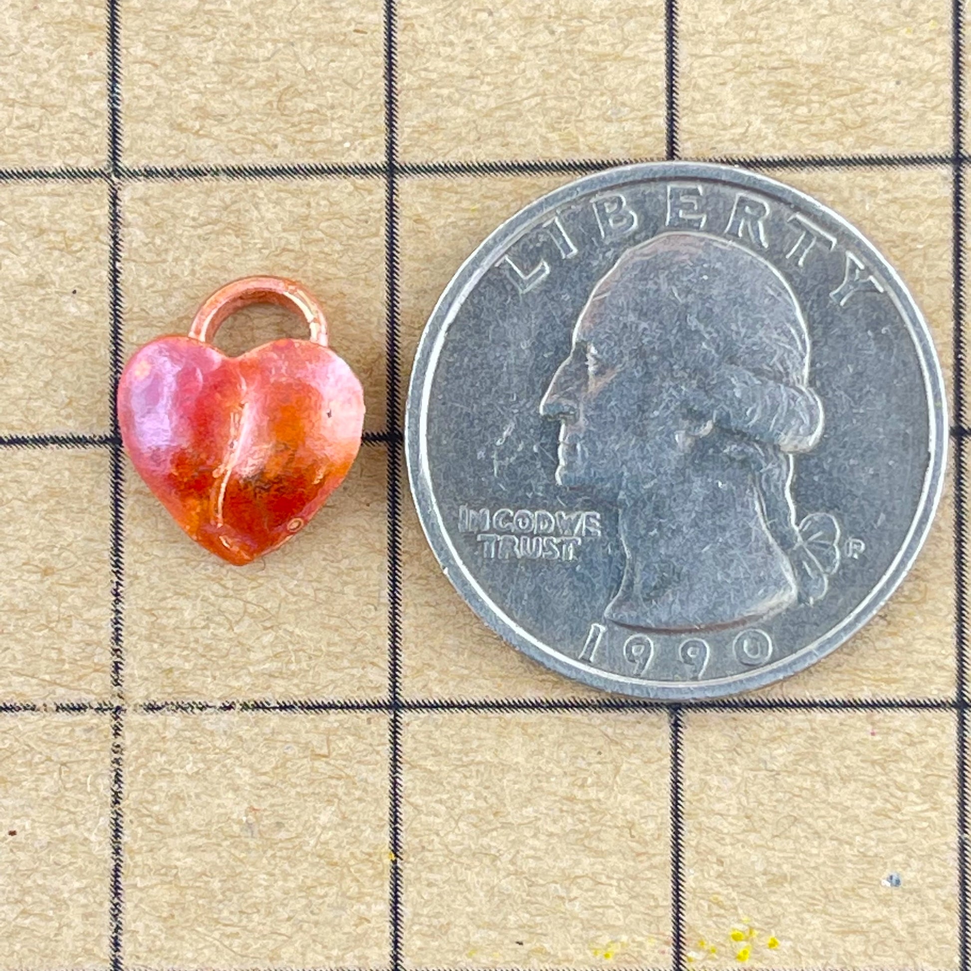 Small and simple, this heart charm combines genuine copper and brass with a smooth, slightly hammered surface. The warm tones of both metals come together naturally, offering subtle color variation and a handcrafted feel. It’s torch-heated to develop a rich patina and sealed with lacquer to maintain its finish. Perfect for adding a rustic, artisanal touch to earrings, bracelets, or your own unique jewelry designs.