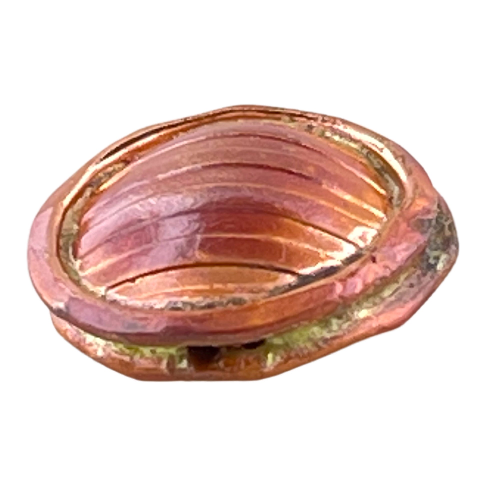 Patricia Healey Copper components are sealed with a clear lacquer to help preserve the vibrant color and protect the surface. Over time, jewelry naturally picks up traces of lotion, sweat, and skin oils, and a gentle wipe with Endust helps keep your piece clean and well cared-for.