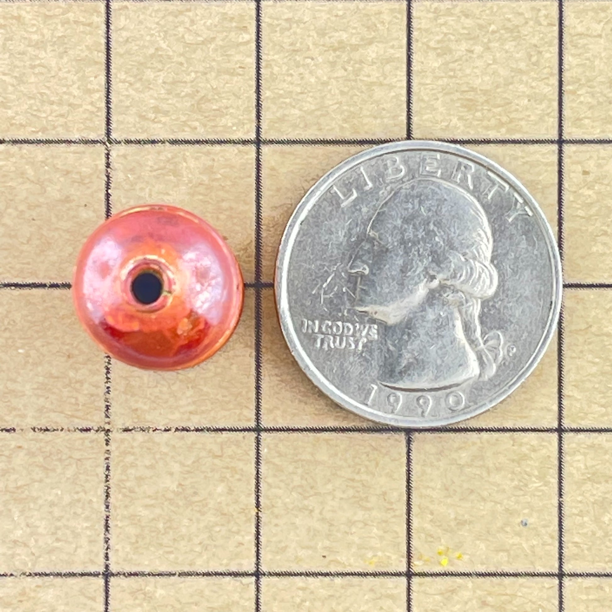 Rustic and versatile, this copper end cap adds a beautiful finish to multi-strand pieces. With an 8mm inner diameter, these distinctive caps easily accommodate multiple strands of leather, beading cord, wire, Kumihimo braids, and more. The rich red patina is achieved through a flame-torched process, then sealed with a protective lacquer to preserve its vibrant, rustic beauty.