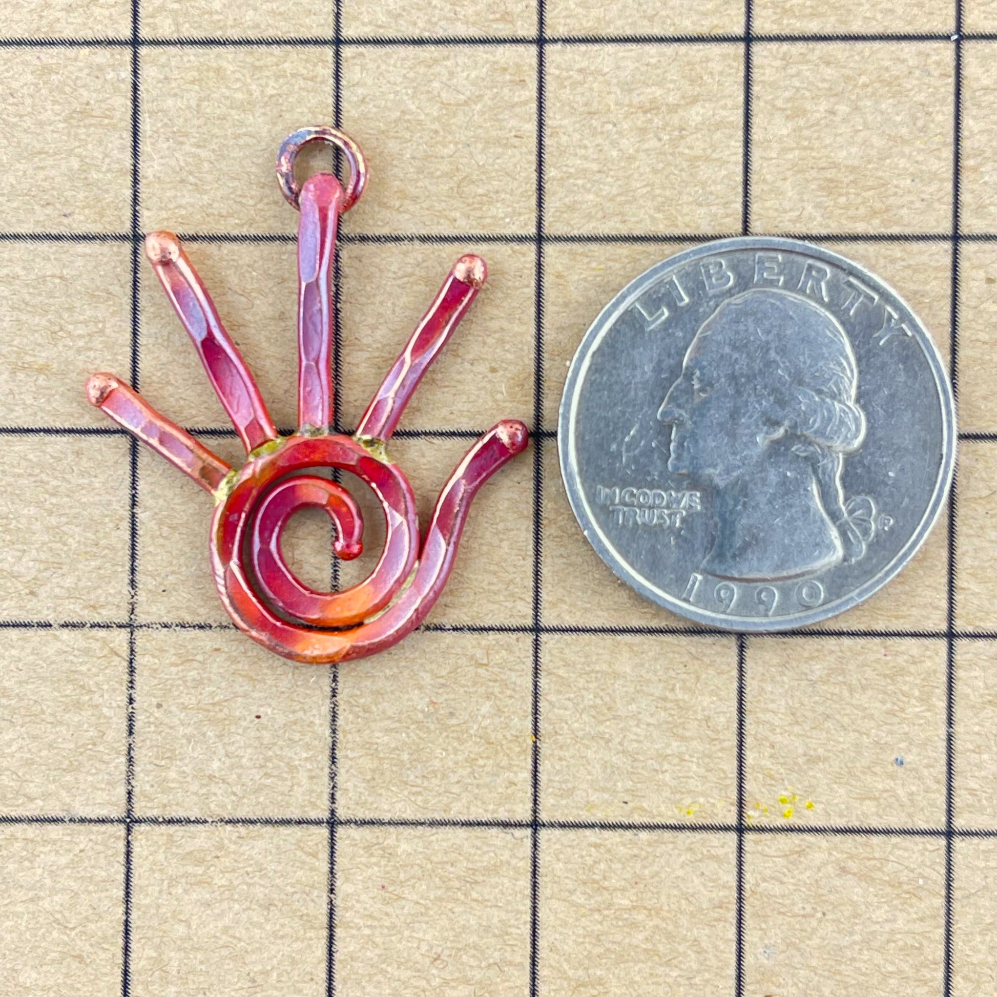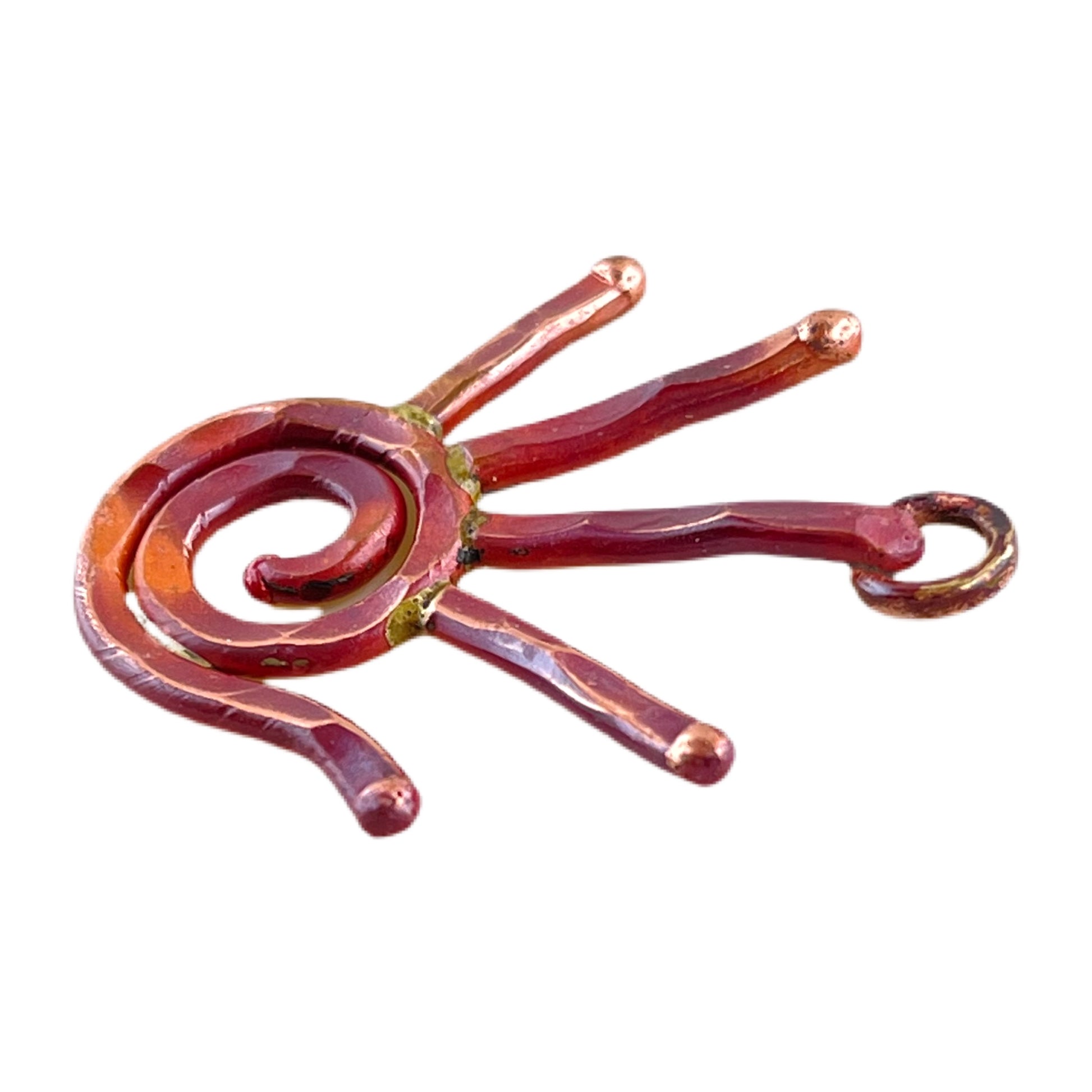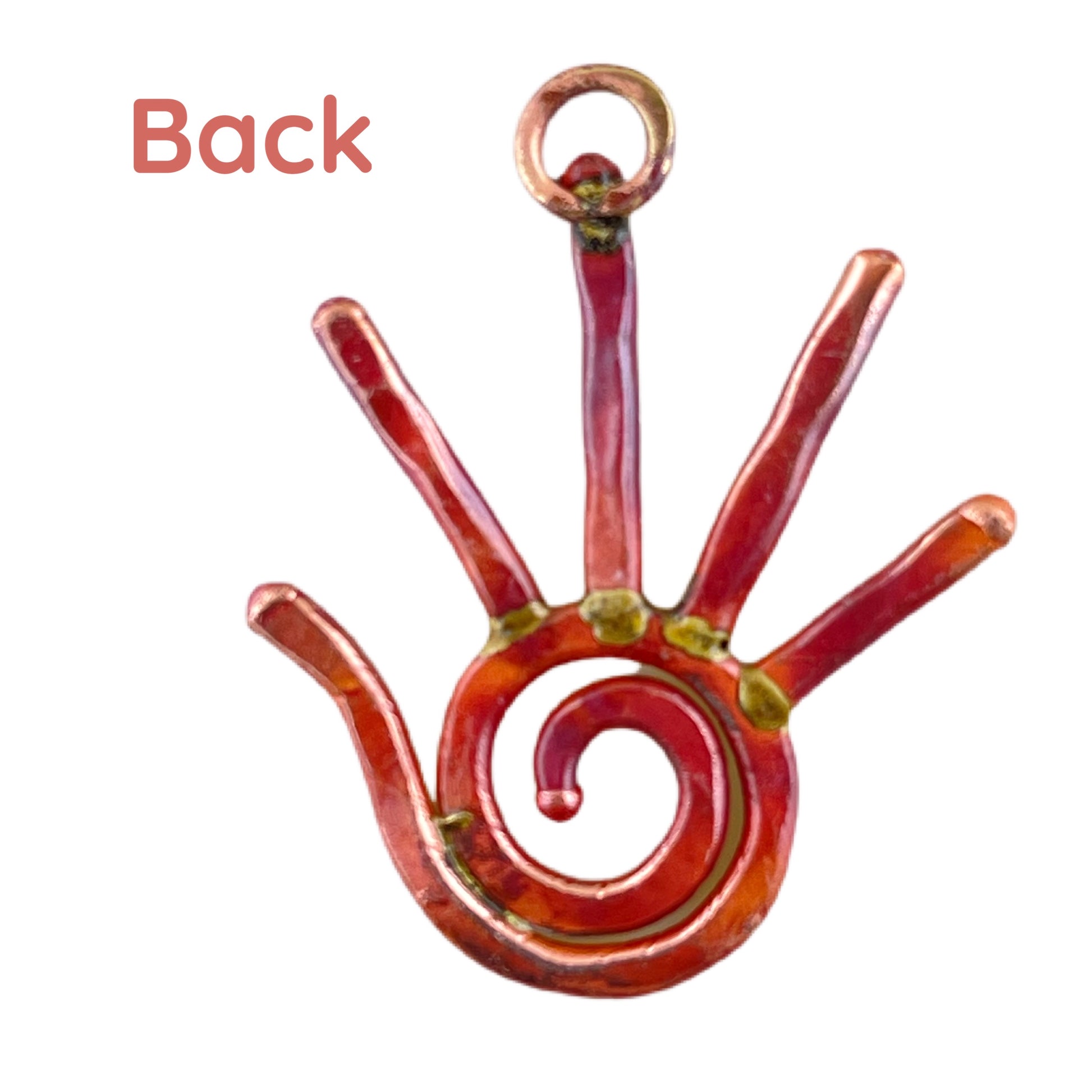Original Artwork by Patricia Healey ~ Each gorgeous genuine copper bead and pendant is handmade from sheet metal. First we cut the shapes out, then put form to metal using the technique of “Repousse”, (beating the crap out of the metal from the reverse side giving it form). We use a bronze solder which you can sometimes see as bits of gold peeking through the solder seams. To get the rich colors we use our top secret patination formula and then fire it up with a torch. Finally, the color is sealed in with a metal lacquer.