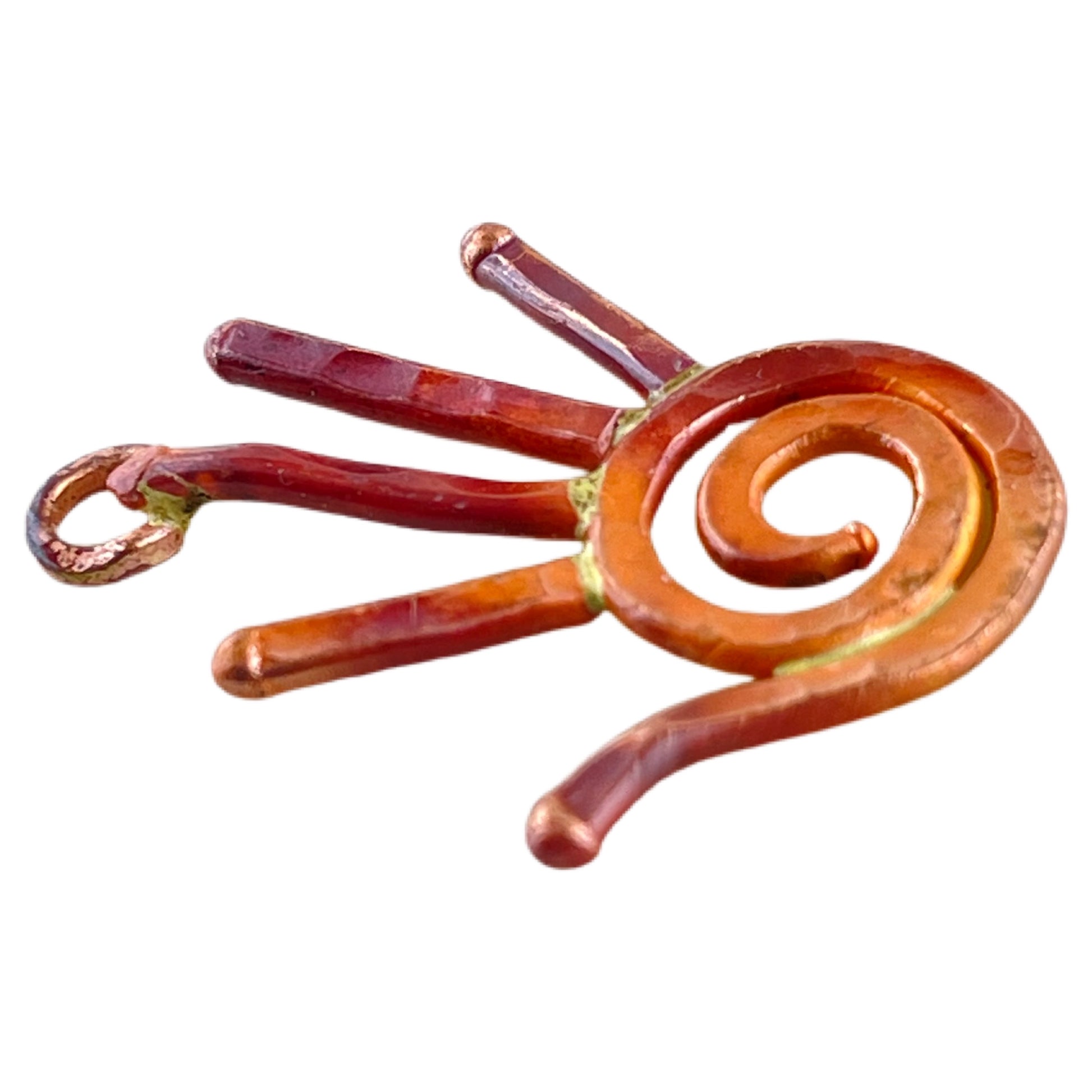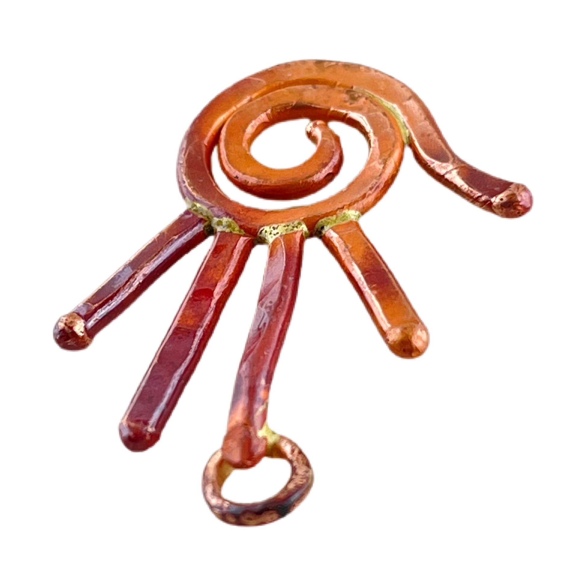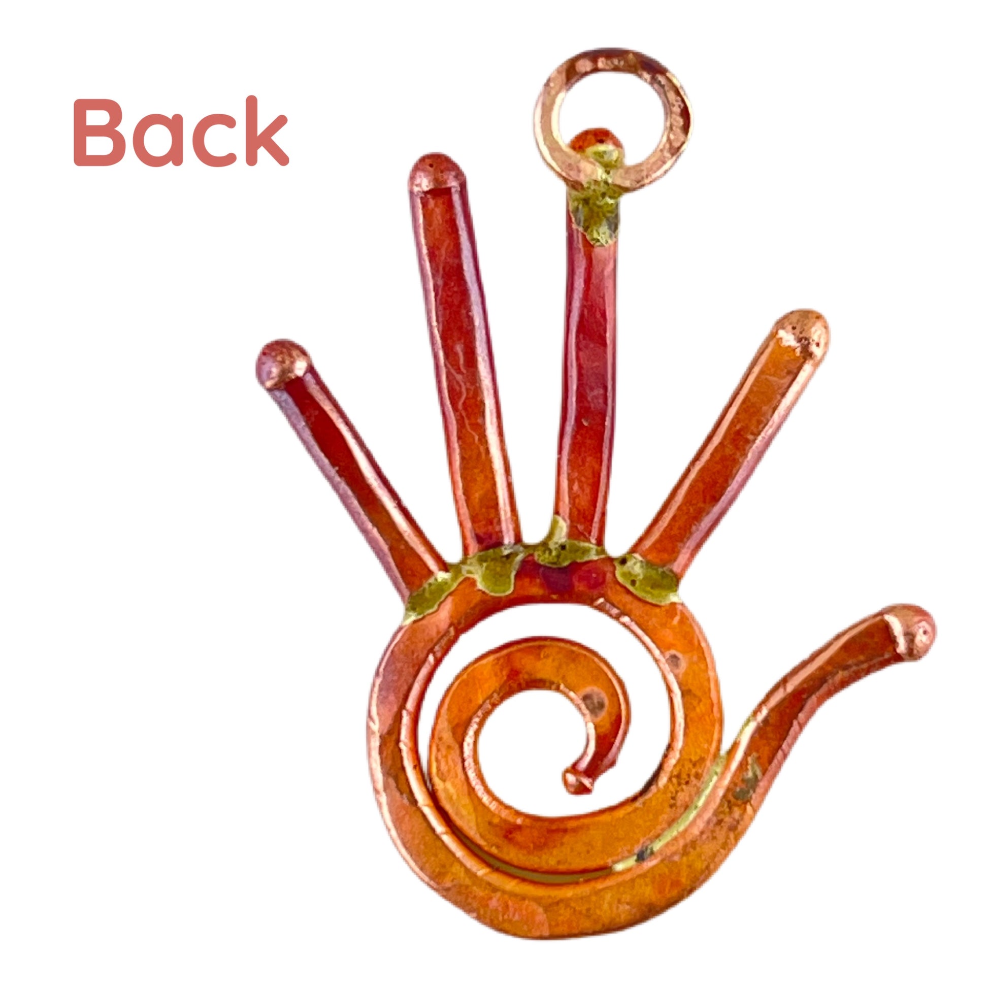 Original Artwork by Patricia Healey ~ Each gorgeous genuine copper bead and pendant is handmade from sheet metal. First we cut the shapes out, then put form to metal using the technique of “Repousse”, (beating the crap out of the metal from the reverse side giving it form). We use a bronze solder which you can sometimes see as bits of gold peeking through the solder seams. To get the rich colors we use our top secret patination formula and then fire it up with a torch. Finally, the color is sealed in with a metal lacquer.