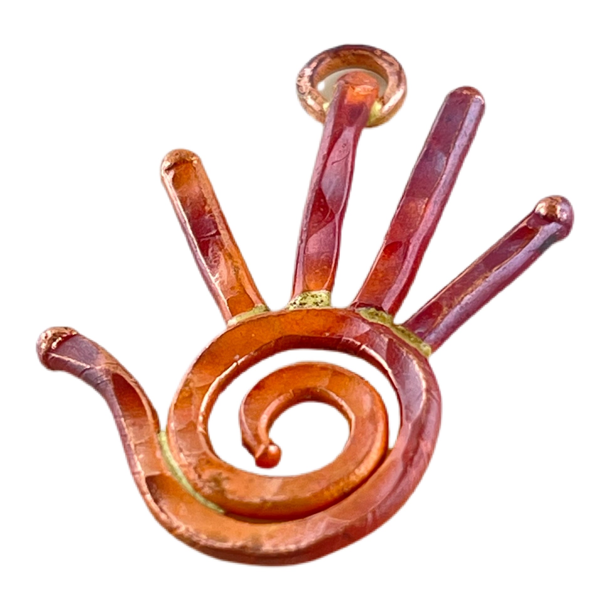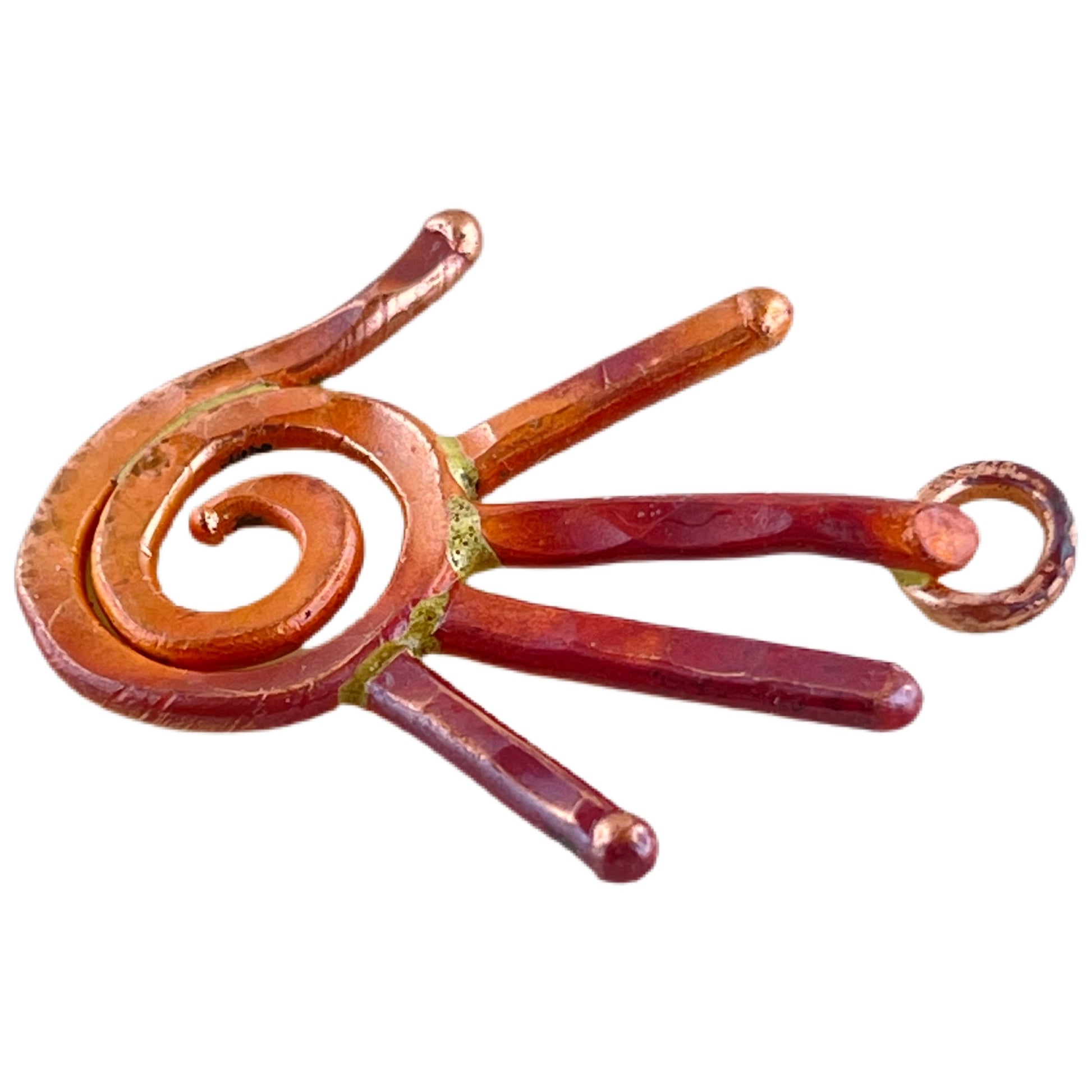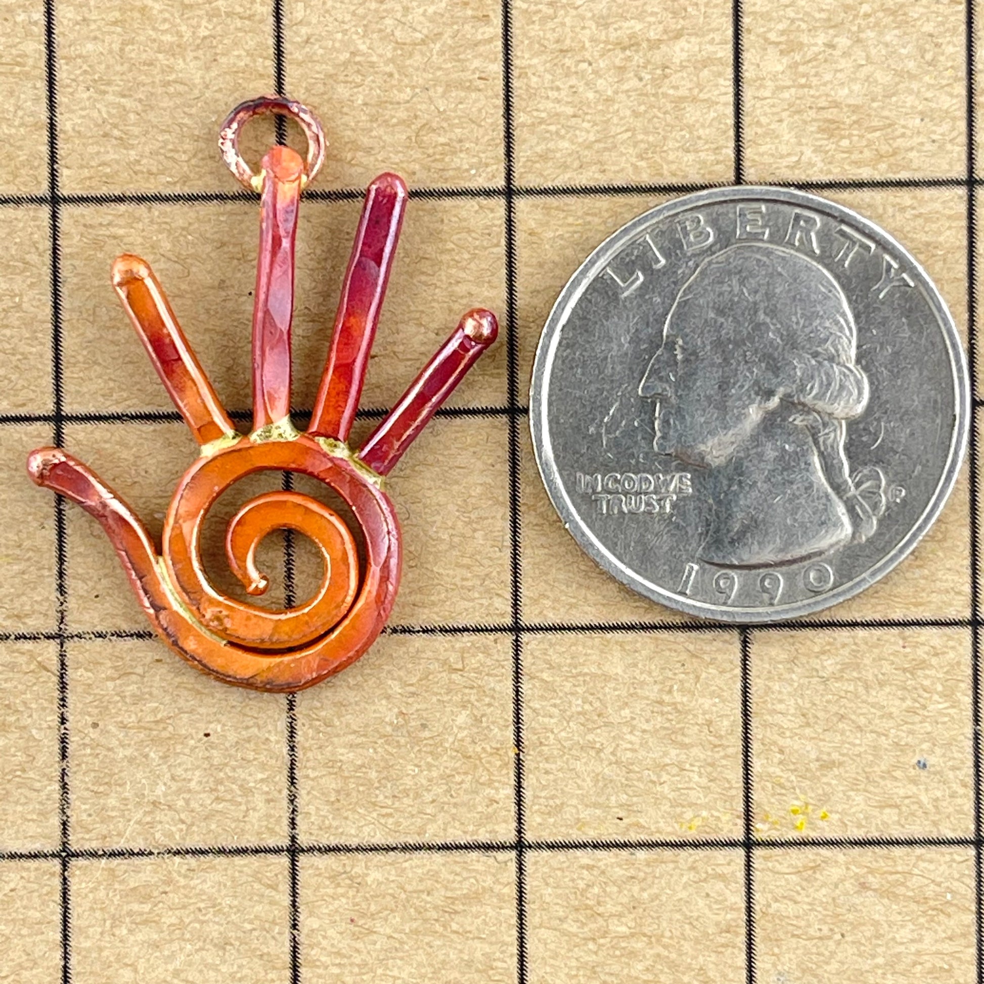 Original Artwork by Patricia Healey ~ Each gorgeous genuine copper bead and pendant is handmade from sheet metal. First we cut the shapes out, then put form to metal using the technique of “Repousse”, (beating the crap out of the metal from the reverse side giving it form). We use a bronze solder which you can sometimes see as bits of gold peeking through the solder seams. To get the rich colors we use our top secret patination formula and then fire it up with a torch. Finally, the color is sealed in with a metal lacquer.