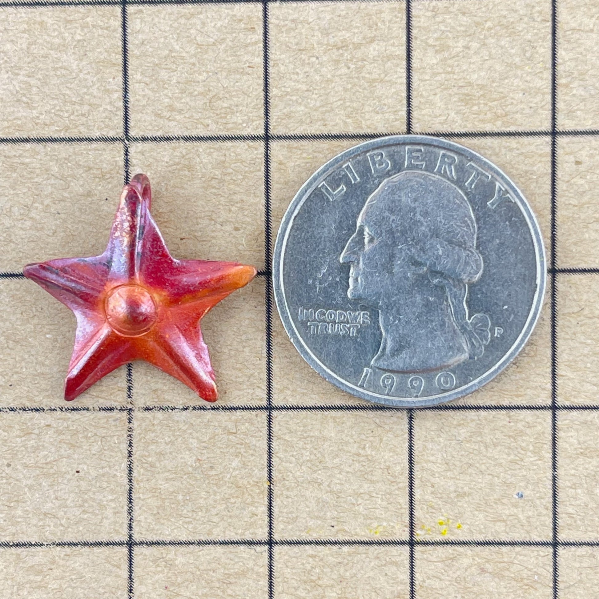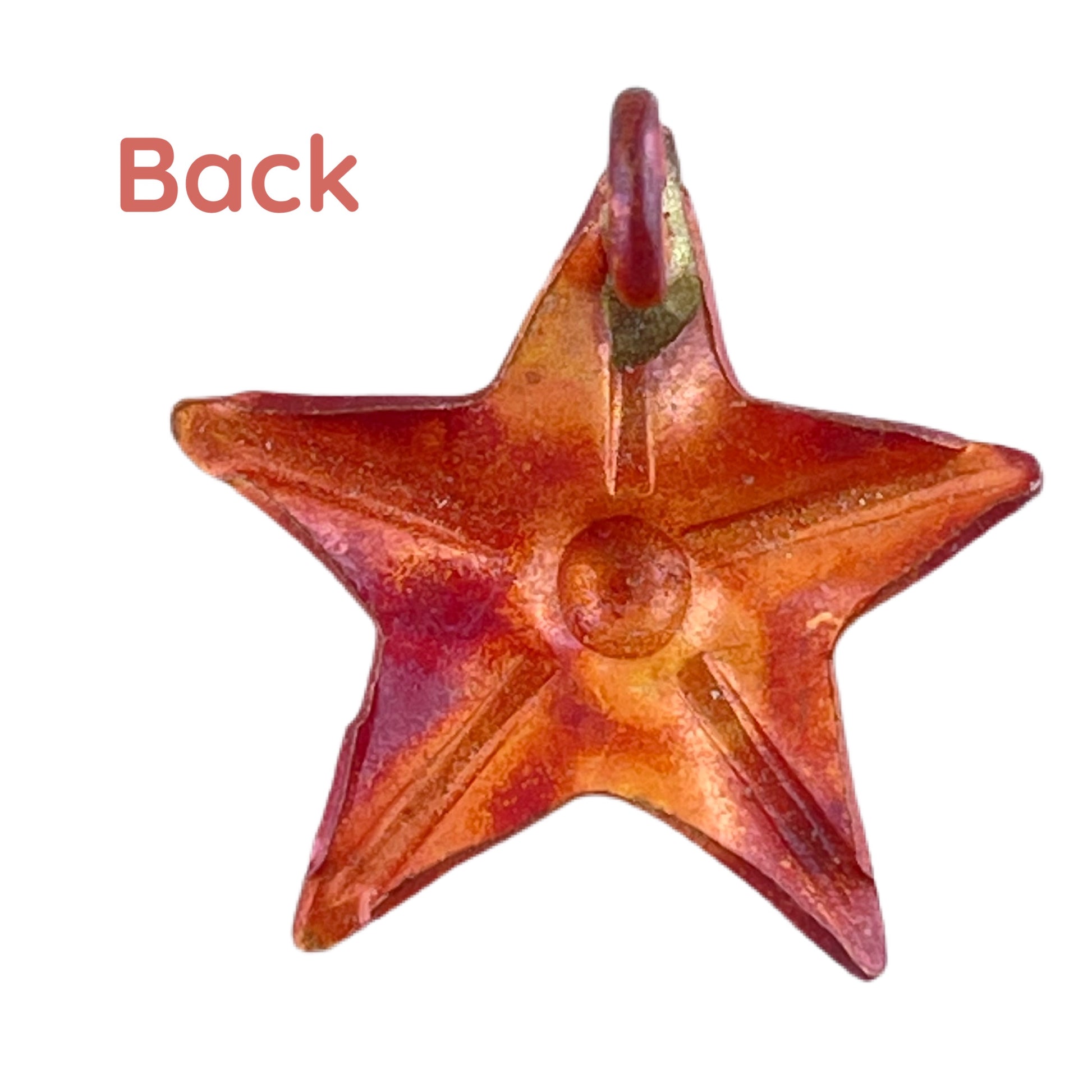 This handcrafted copper star charm holds a bit of magic for everyone. Whether you're drawn to celestial beauty, Western style, or the sparkle of astrological meaning. Shaped from the reverse using the repoussé technique, its raised form glows in fiery tones of red and orange, sealed for lasting brilliance. Lightweight and versatile, it's perfect for earrings, bracelets, or necklaces—a small but radiant reminder that we're all meant to shine.