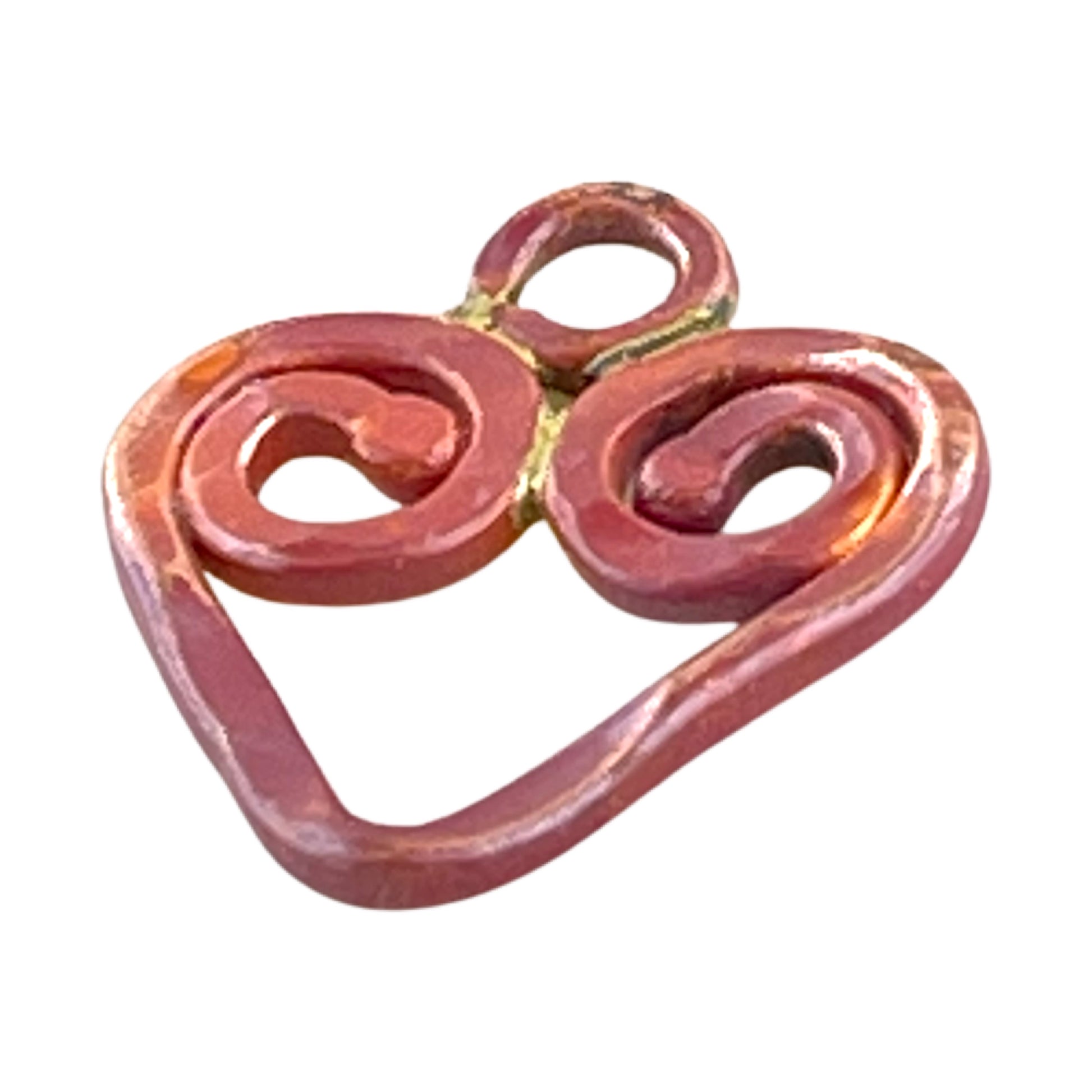 Handmade from thick, hammered copper wire, this open-heart charm offers a simple, sturdy form with natural texture. It’s flame-torched to develop a deep red patina and sealed with lacquer to protect the finish. The hammered surface and open shape give it a rustic feel that fits easily into earrings and bracelets. It brings the genuine character of copper to your creations.