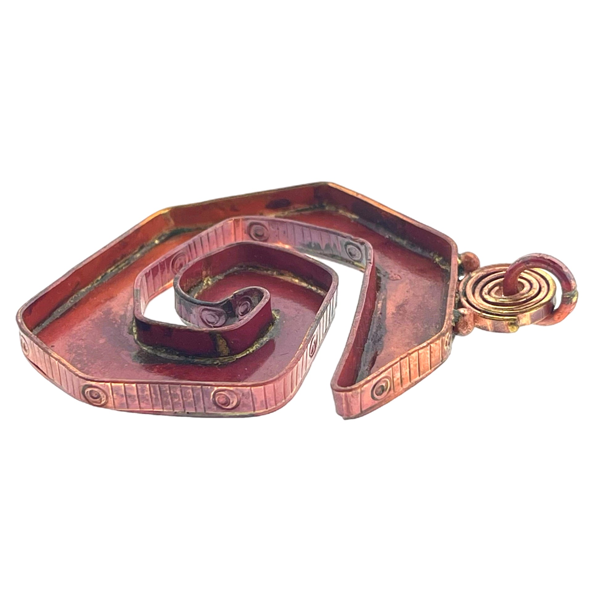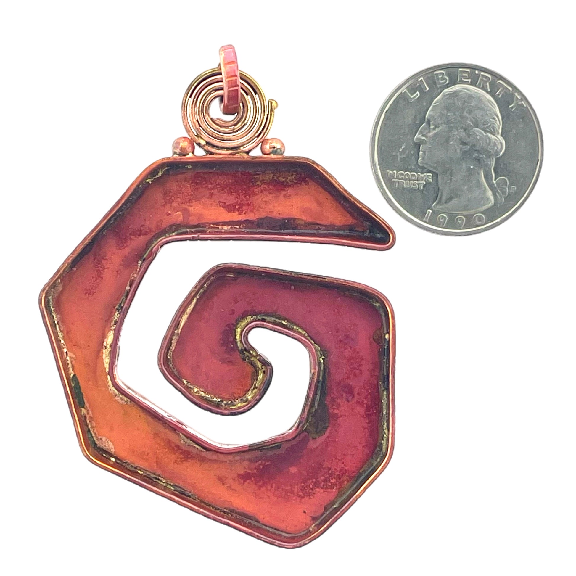 Crafted in copper with brass accents and finished in Patricia Healey’s signature flame-torched red patina, the surface is sealed with lacquer to preserve its depth and color. A striking focal for custom jewelry or mixed media creations.