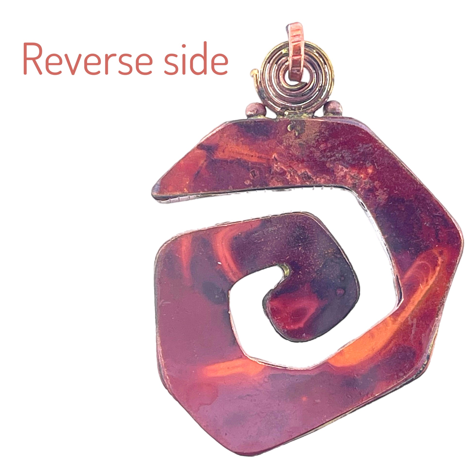A symbol of movement and growth, this large copper spiral pendant has a 4mm deep recessed bezel, ideal for creative inlay using resin, cabochons, enamel, or miniature artwork. The hand-stamped texture surrounding the spiral adds texture and character to the piece.