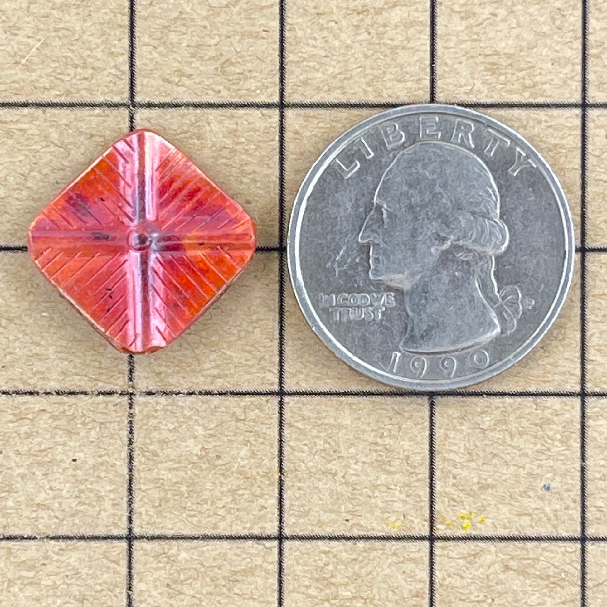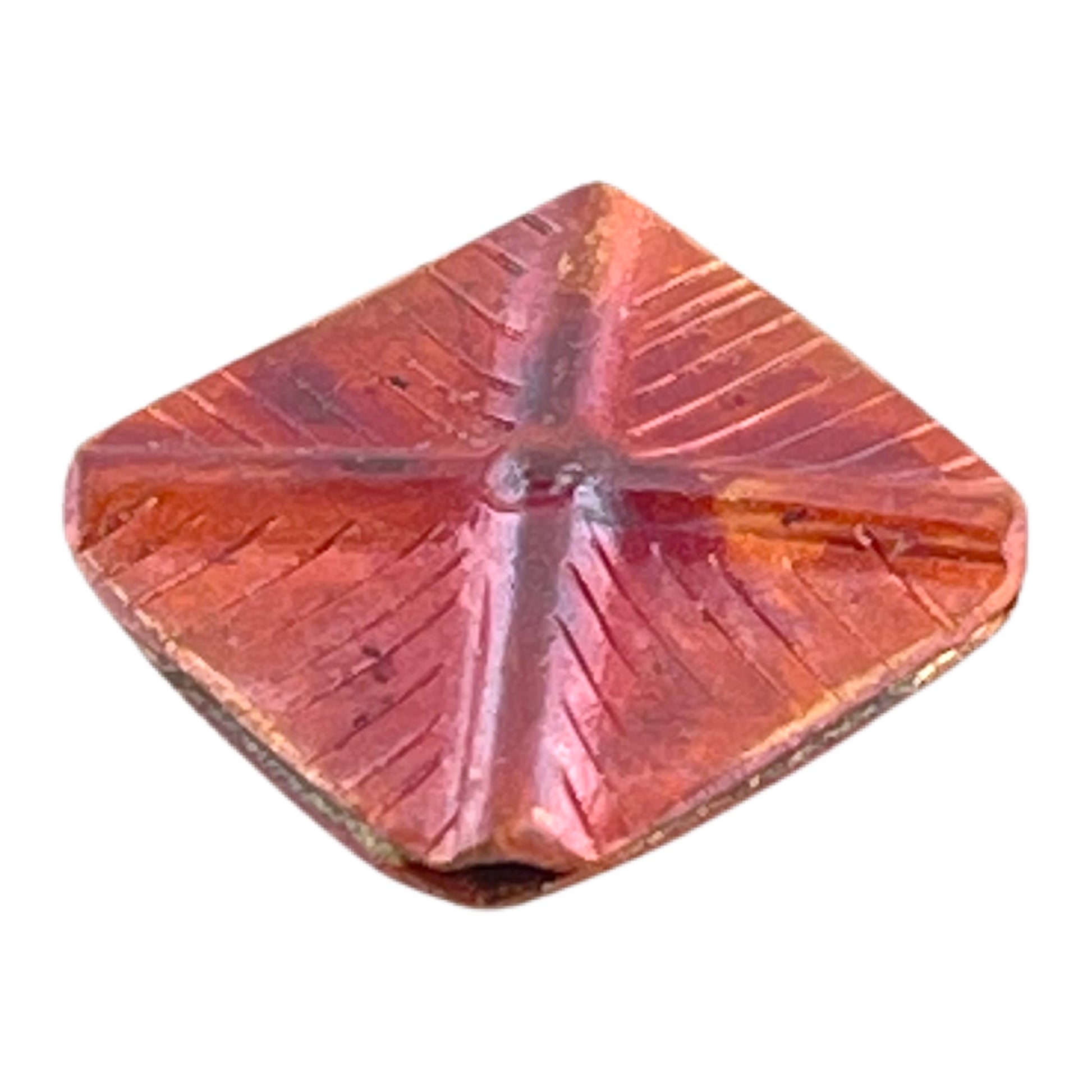 With two stringing channels and hand-stamped detail on both sides, this square copper bead brings structure and warmth to your designs. Its earthy reds and oranges are achieved through flame patina and sealed for durability. Use it as a spacer between larger beads or let it shine on its own in earrings, bracelets, or necklaces.