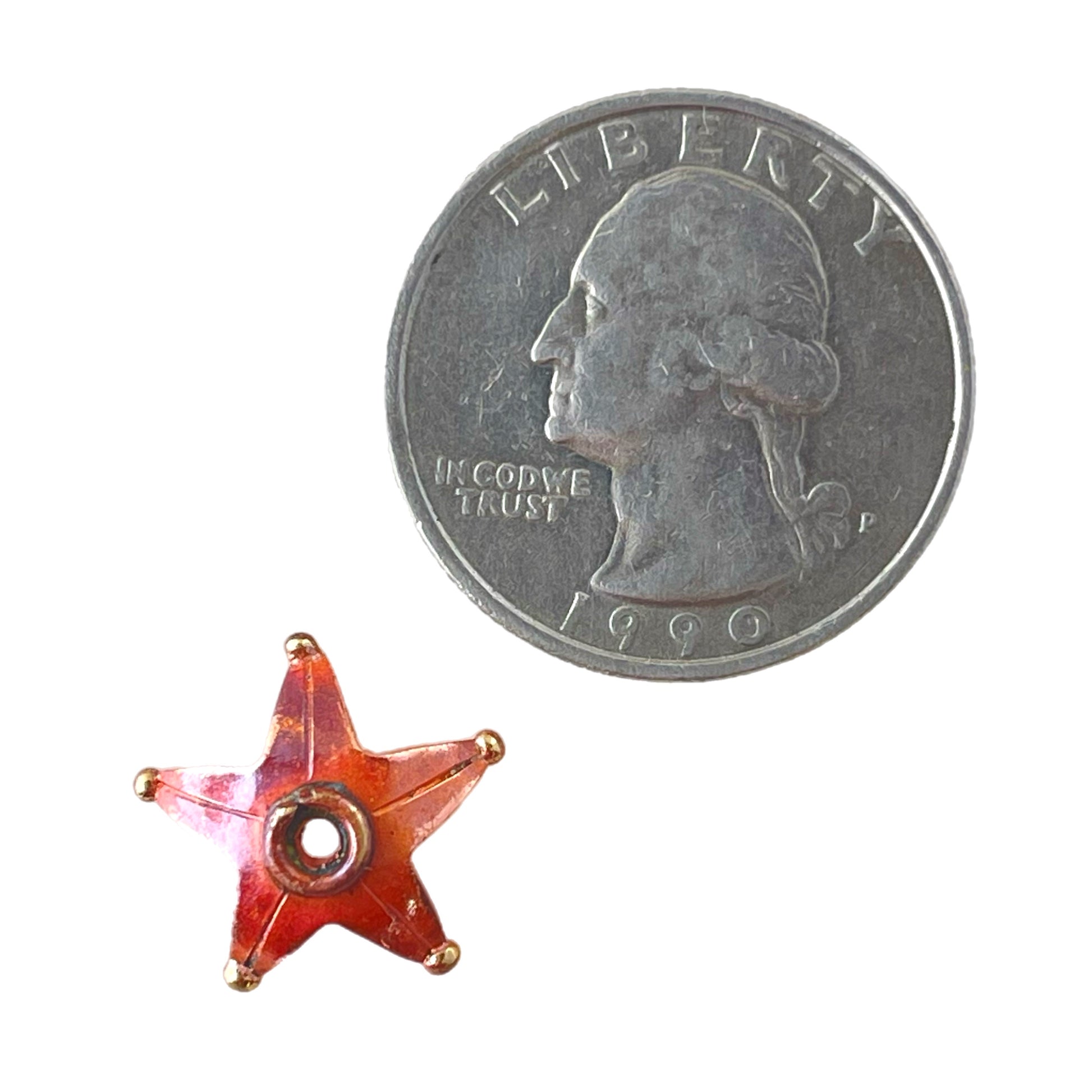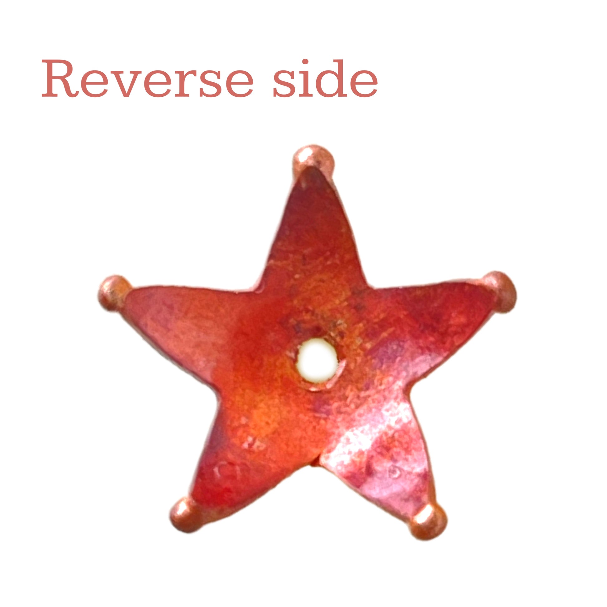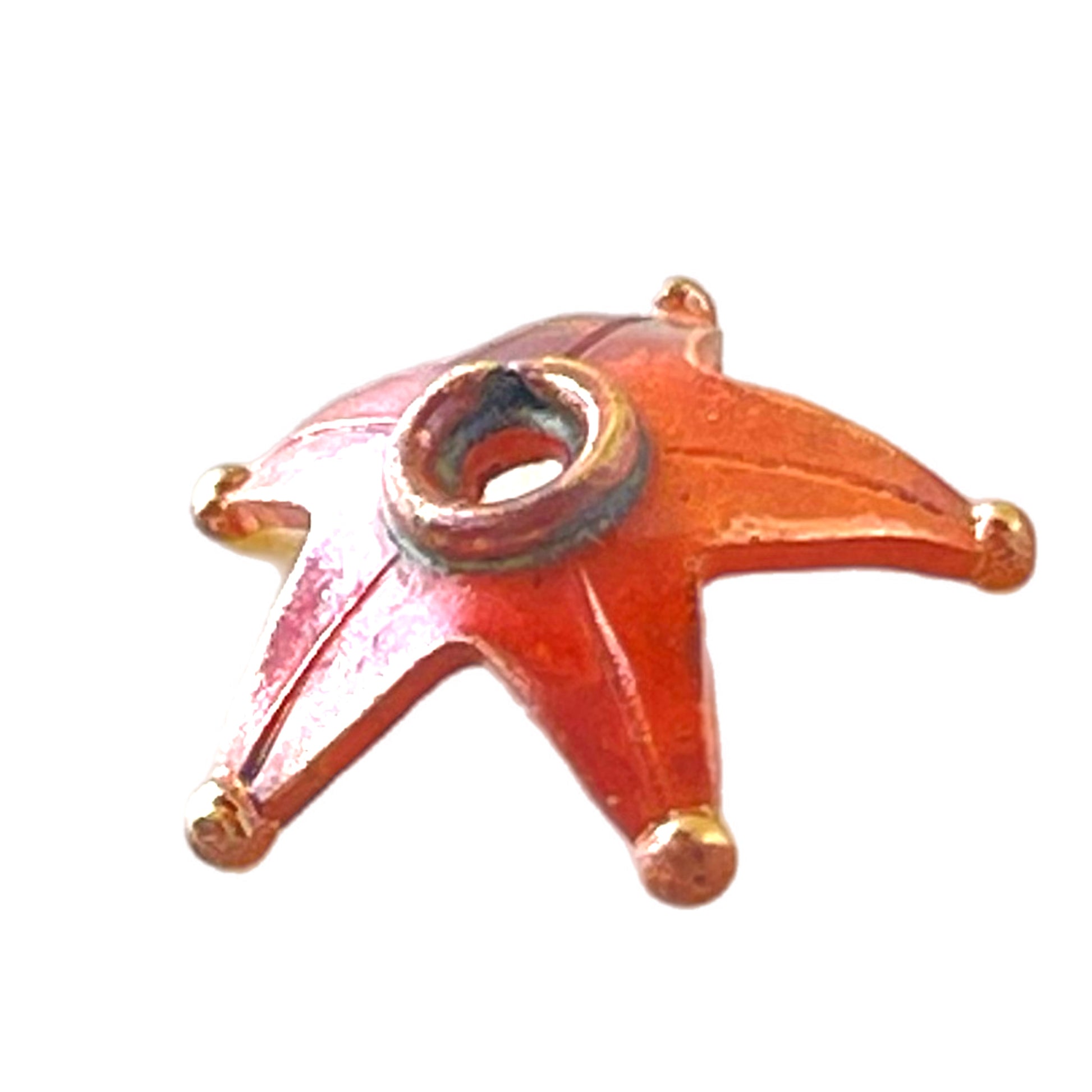 This star-shaped copper bead cap brings warmth, structure, and a touch of charm to your jewelry designs. Accented with brass and finished in torch-fired reds and oranges, it’s both decorative and functional, offering design cohesion, bead stability, and a polished look. The form is slightly adjustable to fit a variety of bead sizes, making it a versatile component for earrings, bracelets, or necklaces. A subtle but striking detail that turns any bead into a centerpiece.