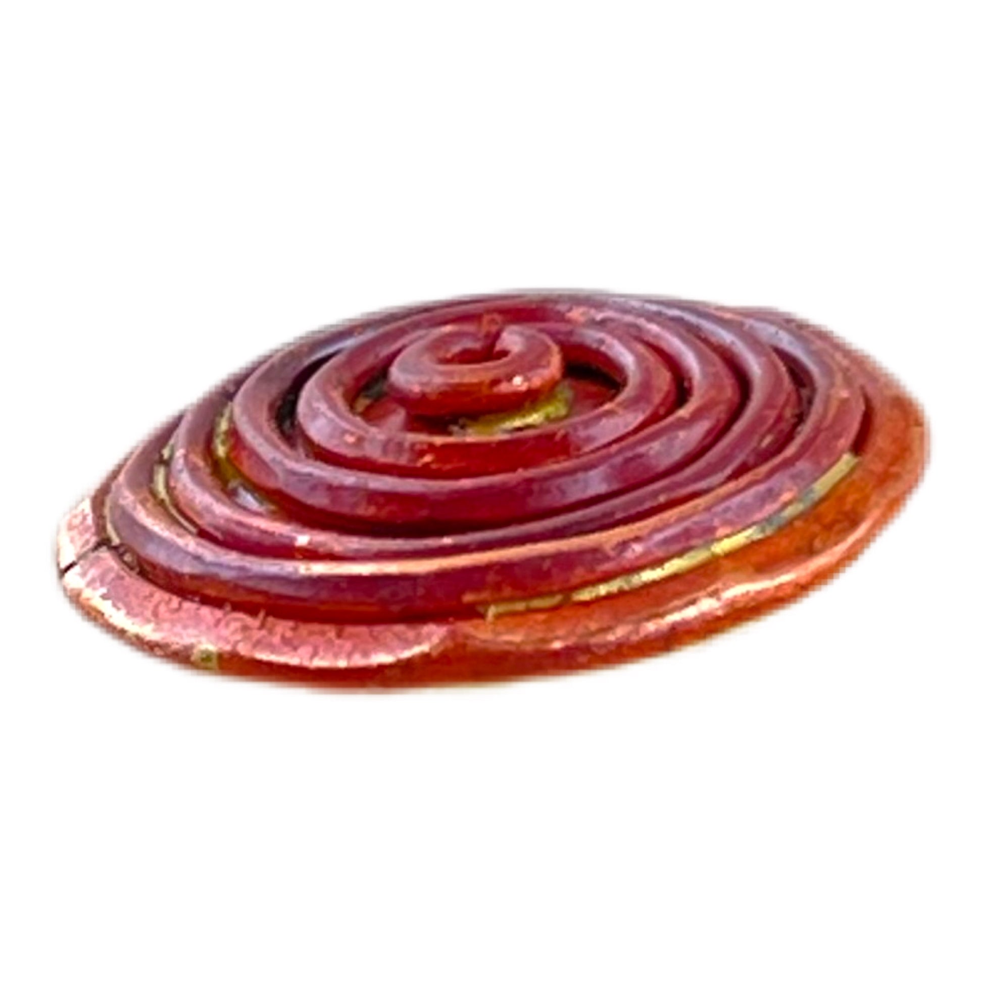 Patricia Healey Copper components are sealed with a clear lacquer to help preserve the vibrant color and protect the surface. Over time, jewelry naturally picks up traces of lotion, sweat, and skin oils, and a gentle wipe with Endust helps keep your piece clean and well cared-for.
