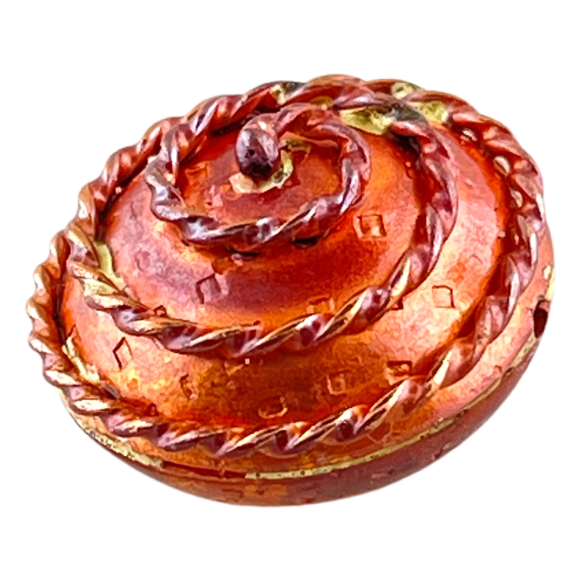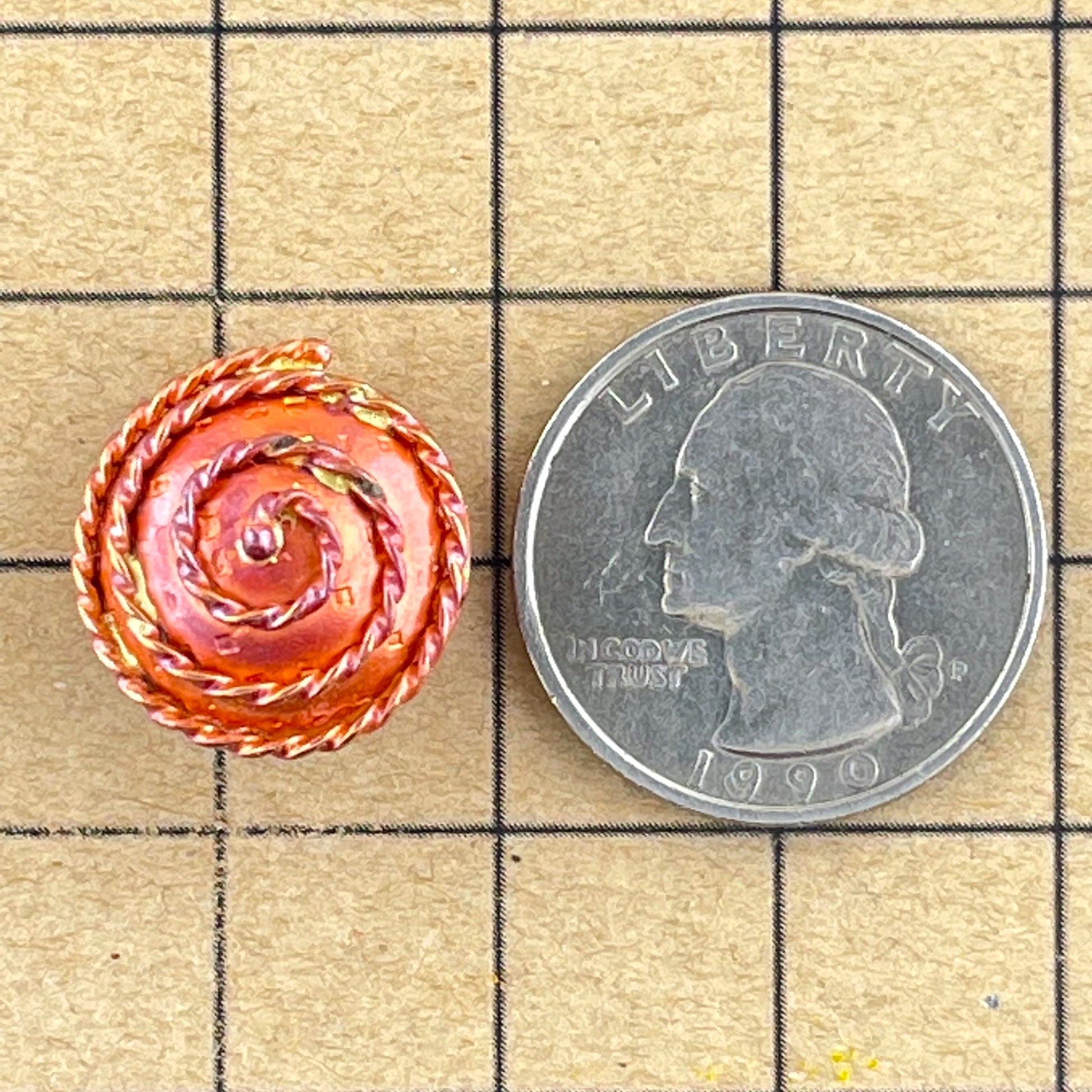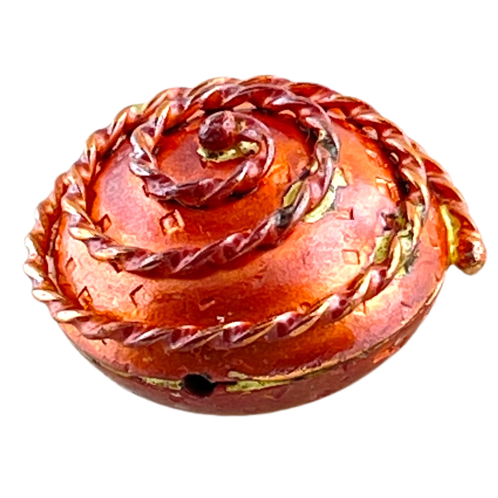 Rich in texture and beautifully dimensional, the copper spiral bead brings a handcrafted touch to your jewelry. A twisted wire spiral wraps over a domed form with hammered detail peeking through behind it, textured on both sides for maximum visual impact. Flame-fired to reveal deep reds and bright oranges, then sealed for lasting color, it works wonderfully in earrings, necklaces, or as a bold charm on a bracelet.